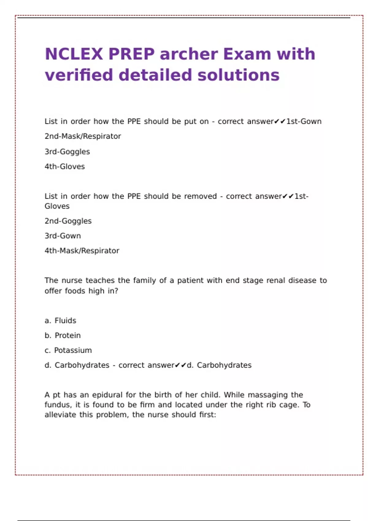 NCLEX PN Archer Exam with verified detailed solutions & rationales