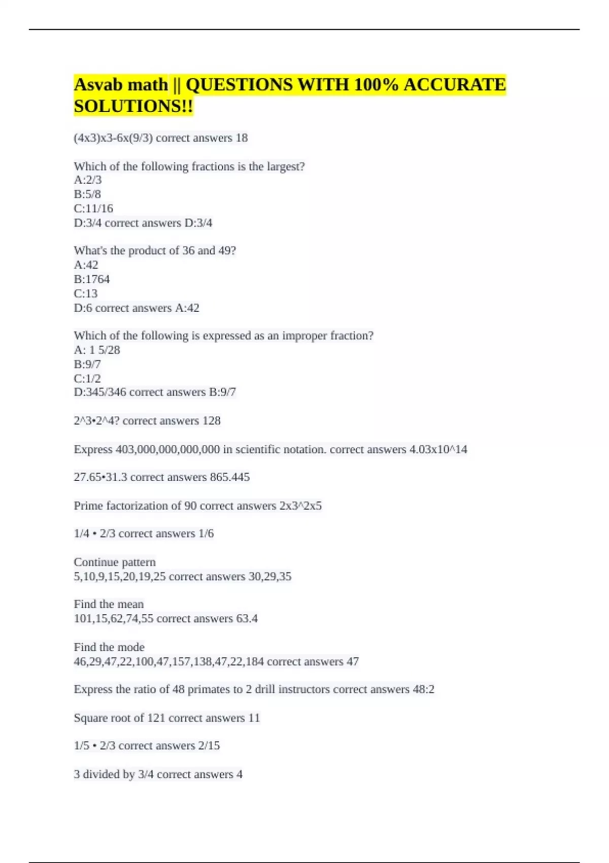 Asvab math || QUESTIONS WITH 100% ACCURATE SOLUTIONS!! ASVAB math formulas || 100% VERIFIED!! ASVAB Mathematics Knowledge Diagnostic Test || Crack the Test: Questions with Verified A+ Responses!! Asvab Practice math ||HIGH YIELD ASVAB QUESTIONS WITH ACCURATE ANSWERS!!