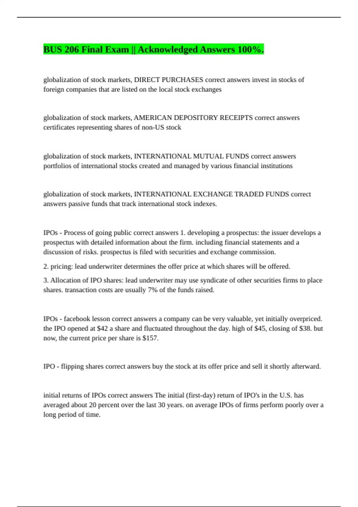 BUS 206 Final Exam || Acknowledged Answers 100%. BUS206 Exam 3 Pt. 2 || Guaranteed Pass. BUS206 Test 1 || Error-free Answers 100%. BUS206, Business Law Chapters 1,2 and 4 || Already Graded A+. Bus 206 || Answered Perfectly 100%. BUS 206 CH 13 || ALL ANSWERS ARE VALID. bus 206 chapter 6 || Possible Questions Accurately Answered. BUS 206 Exam 1 || Al