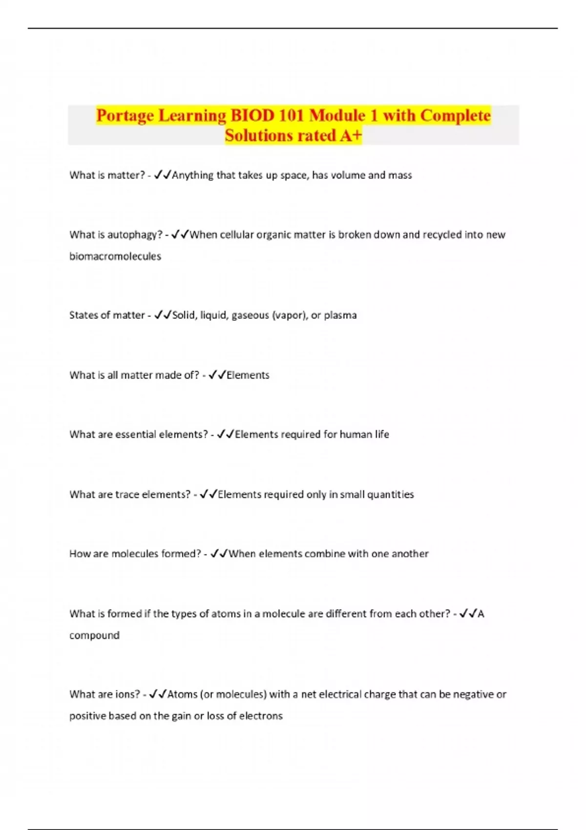 Portage Learning BIOD 101 Exams Compilation 2025/2026