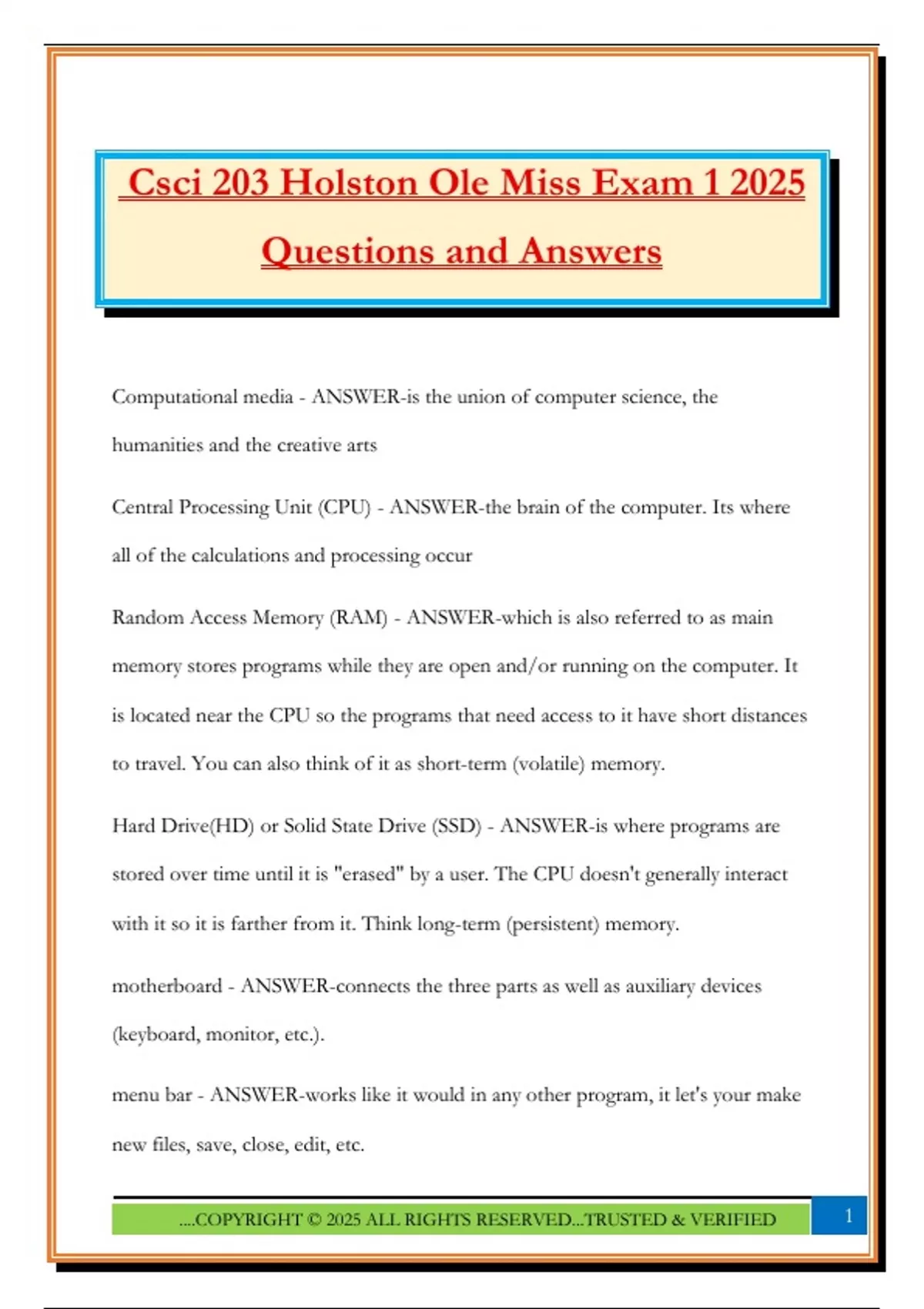 Csci 203 Holston Ole Miss Exam 1 2025 Questions and Answers