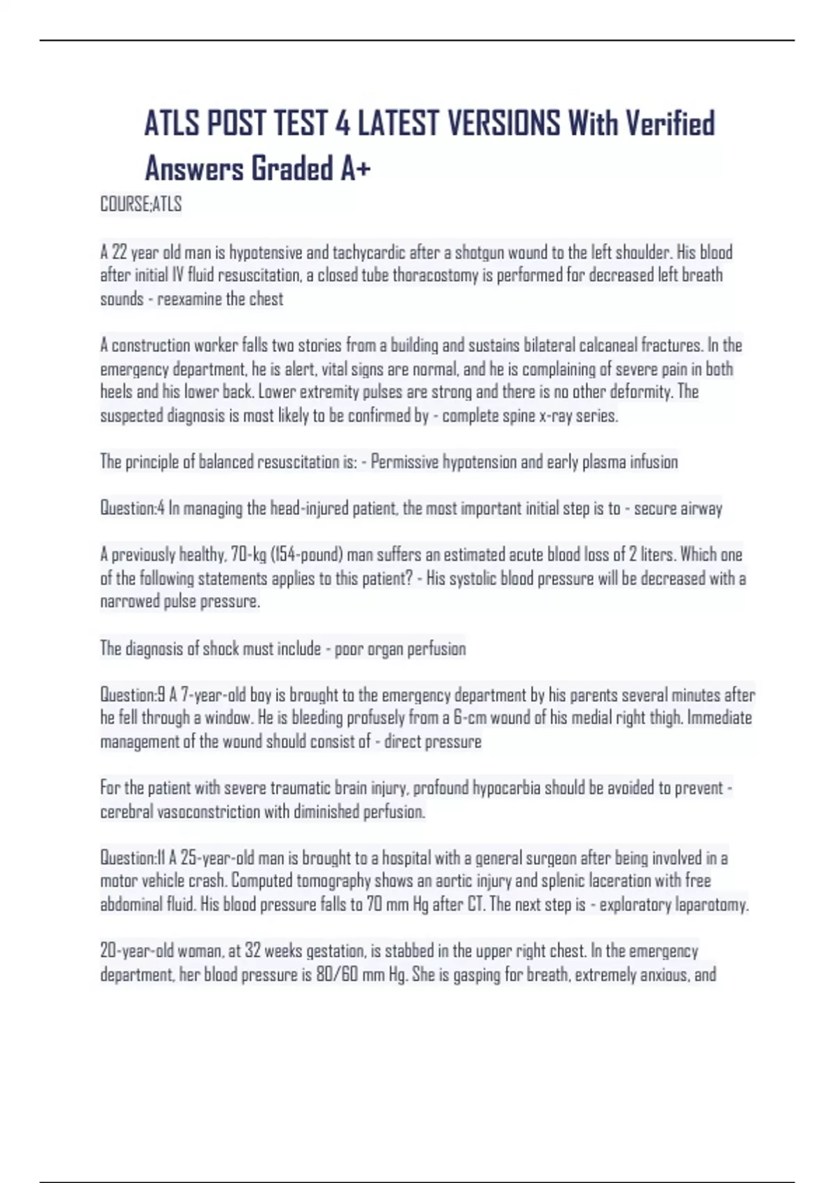 ATLS Test 1 exam with Questions and answers already graded A+| Updated & Verified latest