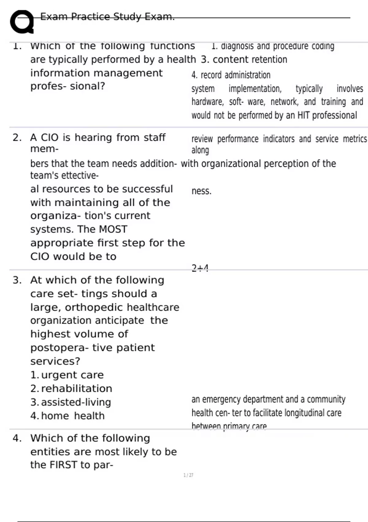 Exam (elaborations) Chapter 1: Introduction: The Evolution of Health Informatics Exam. Exam (elaborations) Exam 1 Informatics Study Test. Exam (elaborations) Chapter 11: Expanding Roles and Functions of the Health Information Management Study Guide Test. Exam (elaborations) CPHIMS CHAPTER 1- HEALTHCARE ENVIRONMENT Questions & Answers. Exam