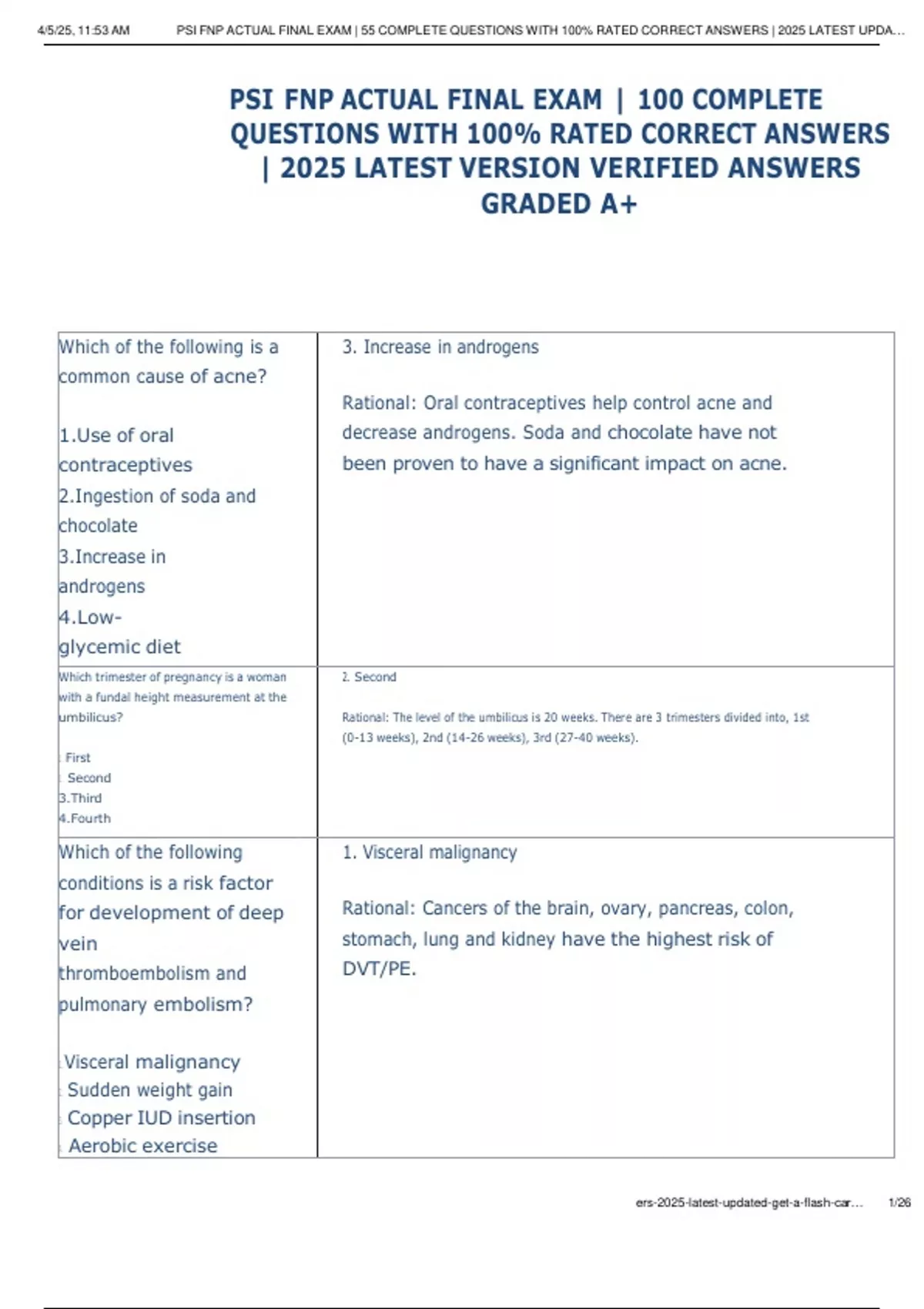 PSI FNP ACTUAL FINAL EXAM | COMPLETE QUESTIONS WITH 100% RATED CORRECT ANSWERS | 2025 LATEST VERSION VERIFIED ANSWERS GRADED A+ PSI FNP ACTUAL FINAL EXAM | COMPLETE QUESTIONS WITH 100% RATED CORRECT ANSWERS | 2025 LATEST VERSION VERIFIED ANSWERS GRADED A+ PSI FNP ACTUAL FINAL EXAM | COMPLETE QUESTIONS WITH 100% RATED CORRECT ANSWERS | 2025 LATEST V