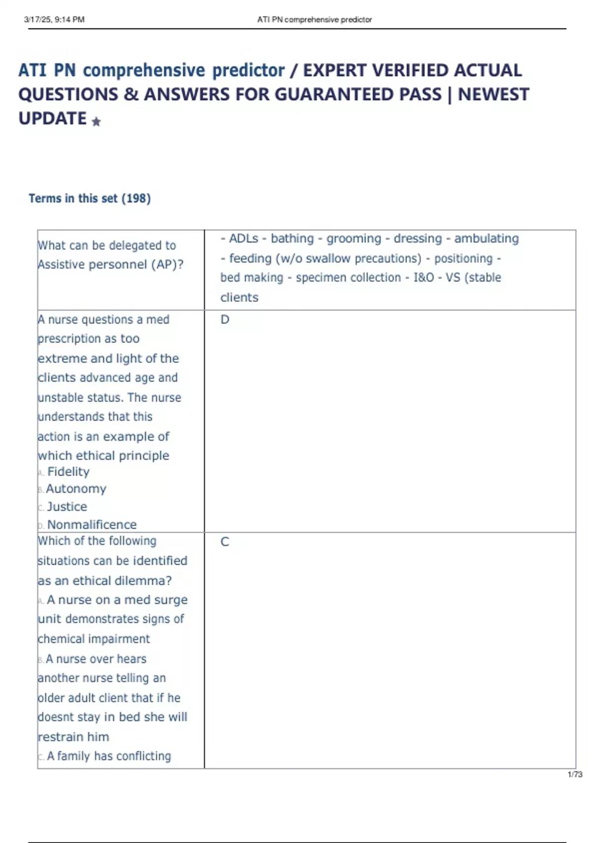 Exam (elaborations) ATI PN COMPREHENSIVE PREDICTOR