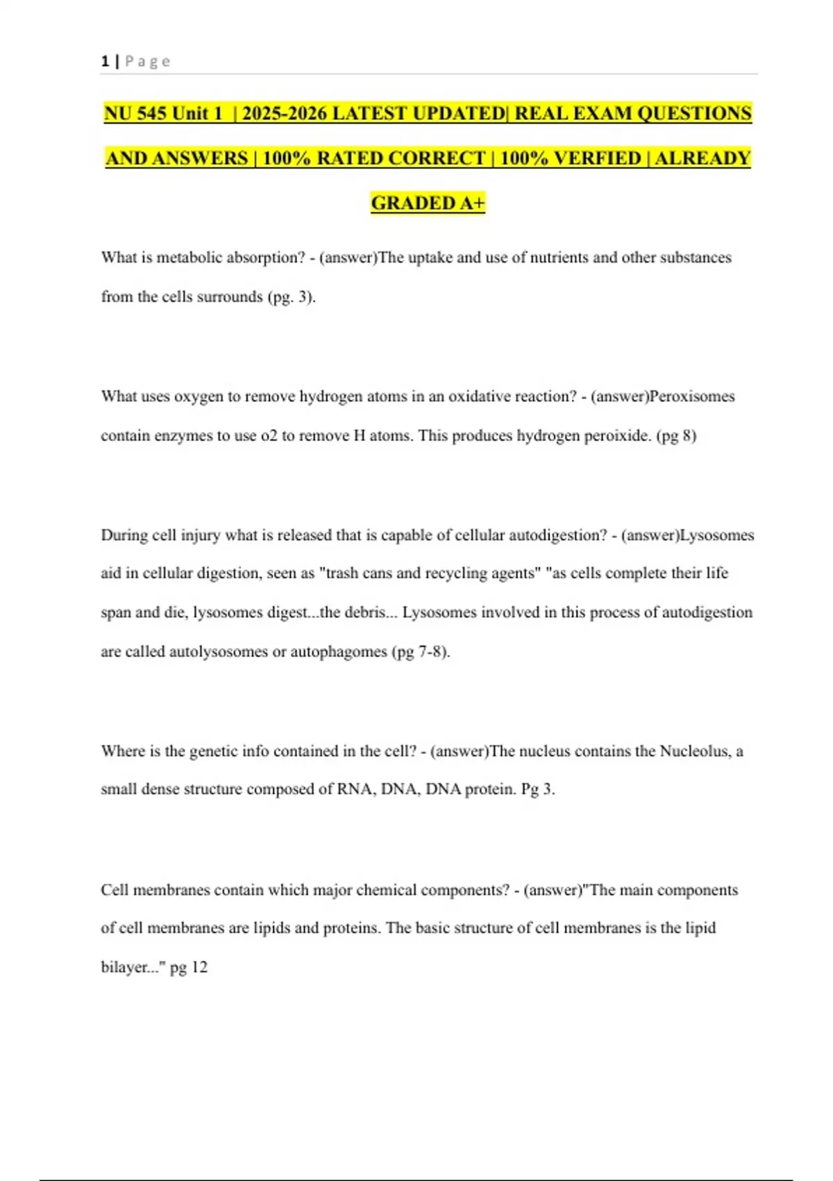 PACKAGE DEAL FOR NU 545 UNIT 1-7 | LATEST UPDATED| REAL EXAM QUESTIONS AND ANSWERS | 100% RATED CORRECT | 100% VERFIED | ALREADY GRADED A