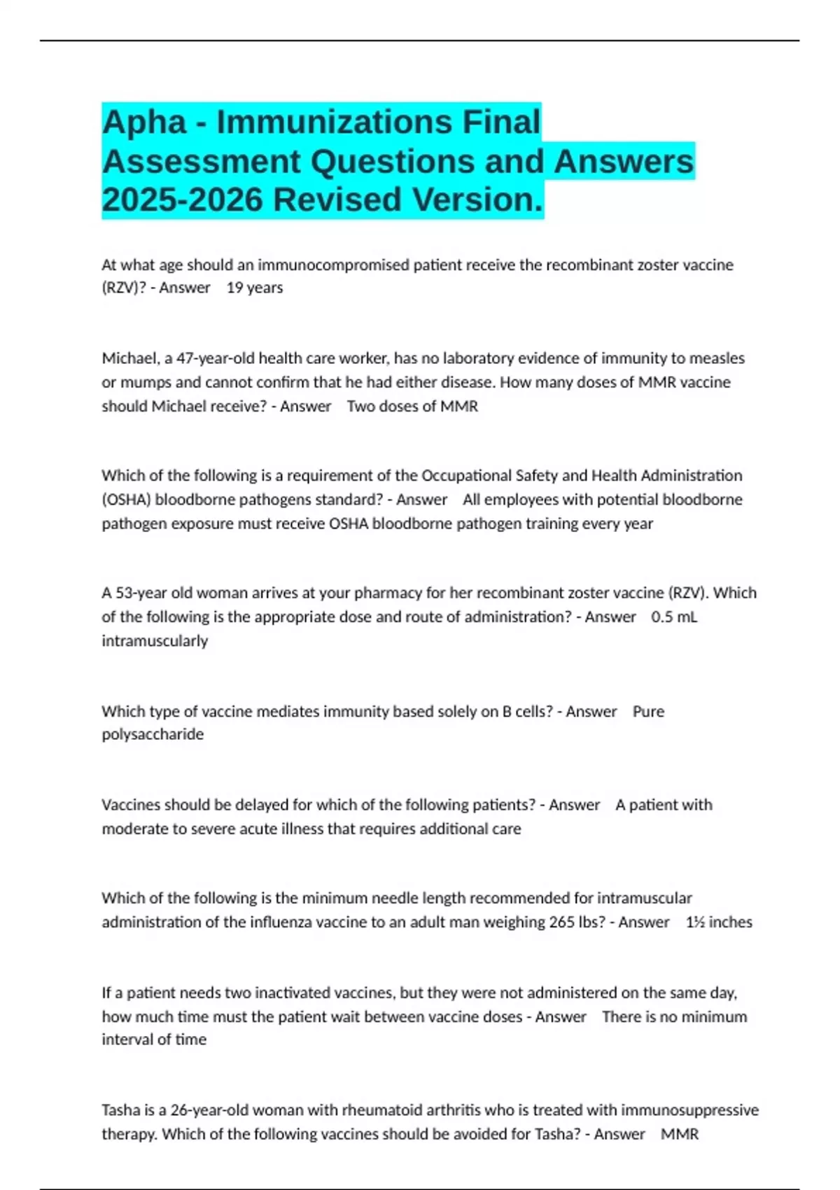 APhA Immunization Exam Bundle (Graded A+ ) 100%Guaranteed Success.