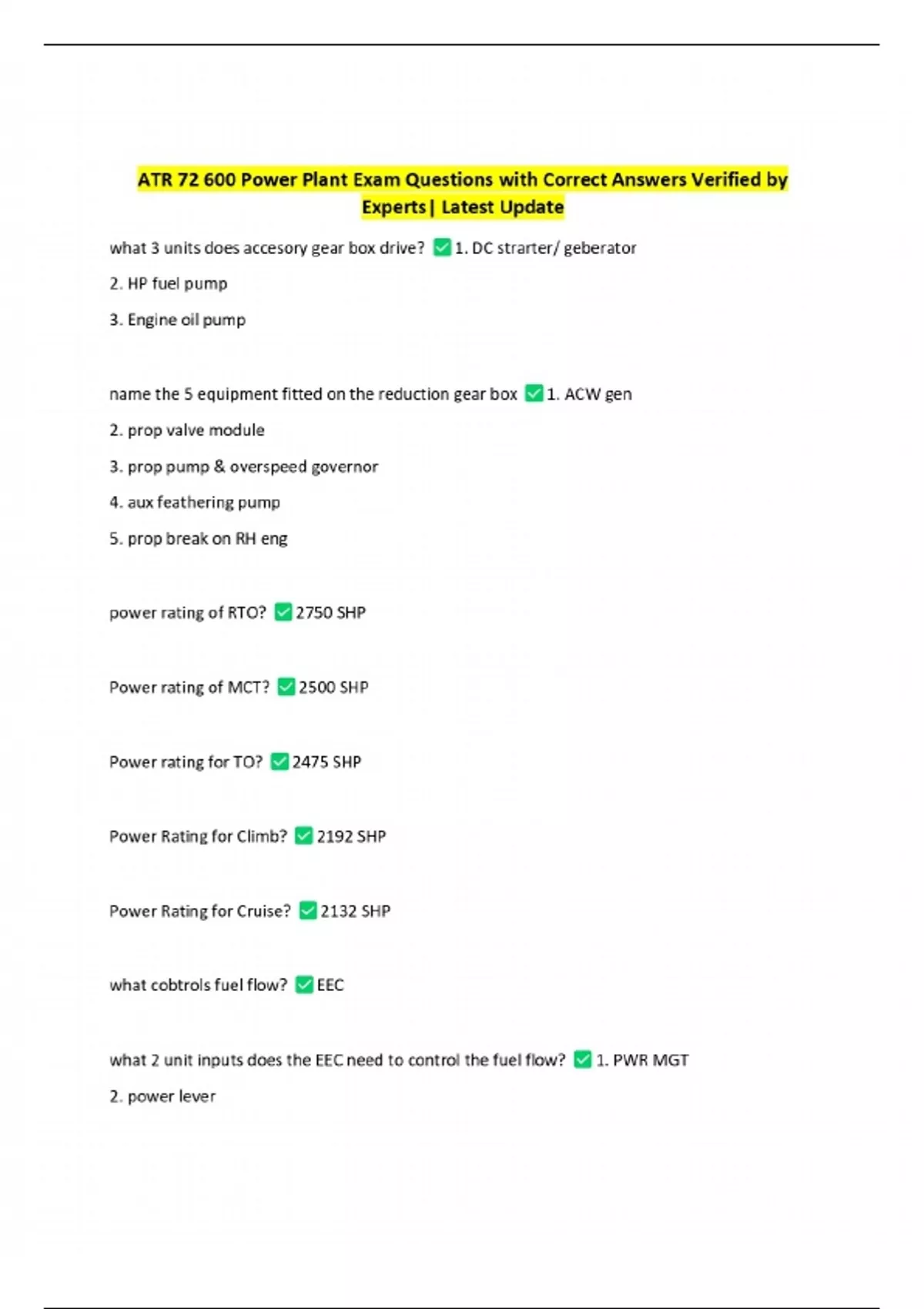 ATR72-600 Flight Instruments Exam Questions with Correct Answers Verified by Experts| Latest Update 6 Exam (elaborations) ATR 72-600 Flight Warning System Exam Questions with Correct Answers Verified by Experts| Latest Update 7 Exam (elaborations) ATR 72-600 (Notes) Questions with Correct Answers Verified by Experts| Latest Update 8 Exam (elaborati