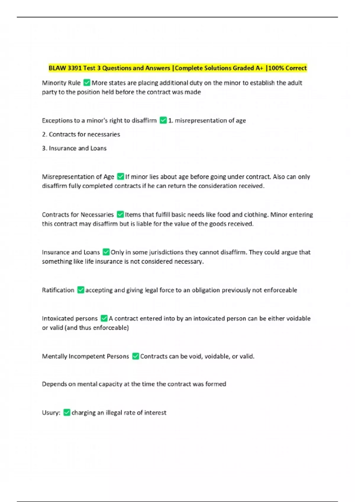 Exam (elaborations) BLAW 3391 Final Exam Questions and Answers |Complete Solutions Graded A+ |100% Correct 3 Exam (elaborations) BLAW 3391 Final Exam Pleasant| Questions and Answers |Complete Solutions Graded A+ |100% Correct 4 Exam (elaborations) BLAW 3391 Final Exam Questions and Answers |Complete Solutions Graded A+ |100% Correct 5 Exam (elabor