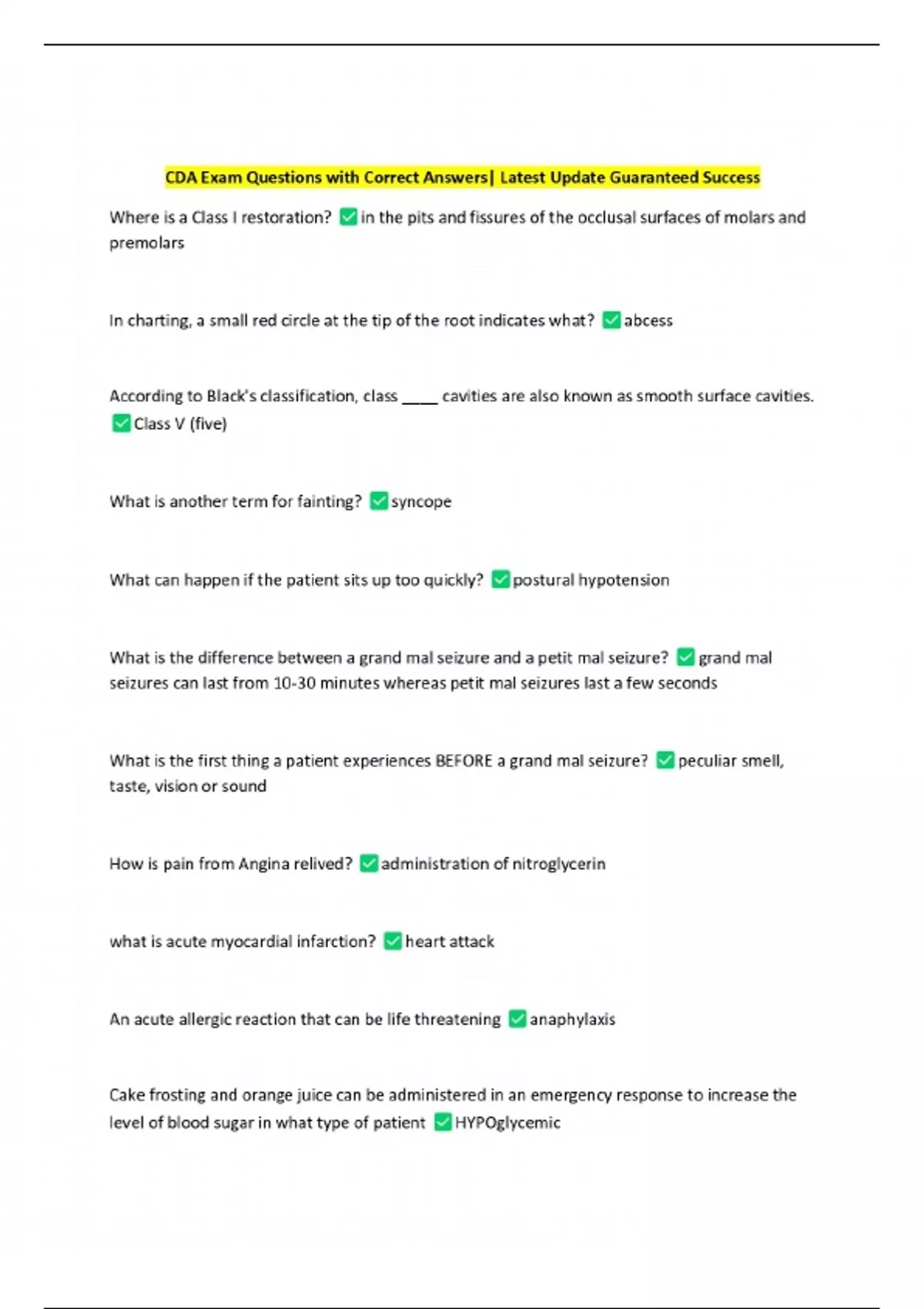 CDA Exam Questions with Correct Answers| Latest Update Guaranteed Success 2 Exam (elaborations) CDA Exam Prep Questions with Correct Answers| Latest Update Guaranteed Success 3 Exam (elaborations) CDA Exam Questions with Correct Answers| Latest Update Guaranteed Success 4 Exam (elaborations) CDA Exam Questions with Correct Answers| Latest Update Gu