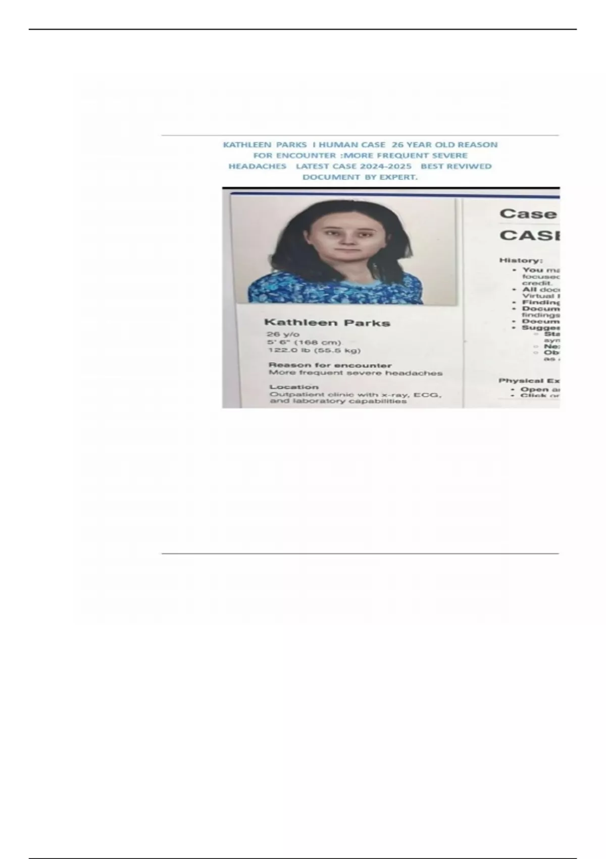 Kathleen Parks iHuman Case Study 2024: Comprehensive Expert Evaluation of a 26-Year-Old Female with Severe Headaches | Detailed Analysis Including HPI