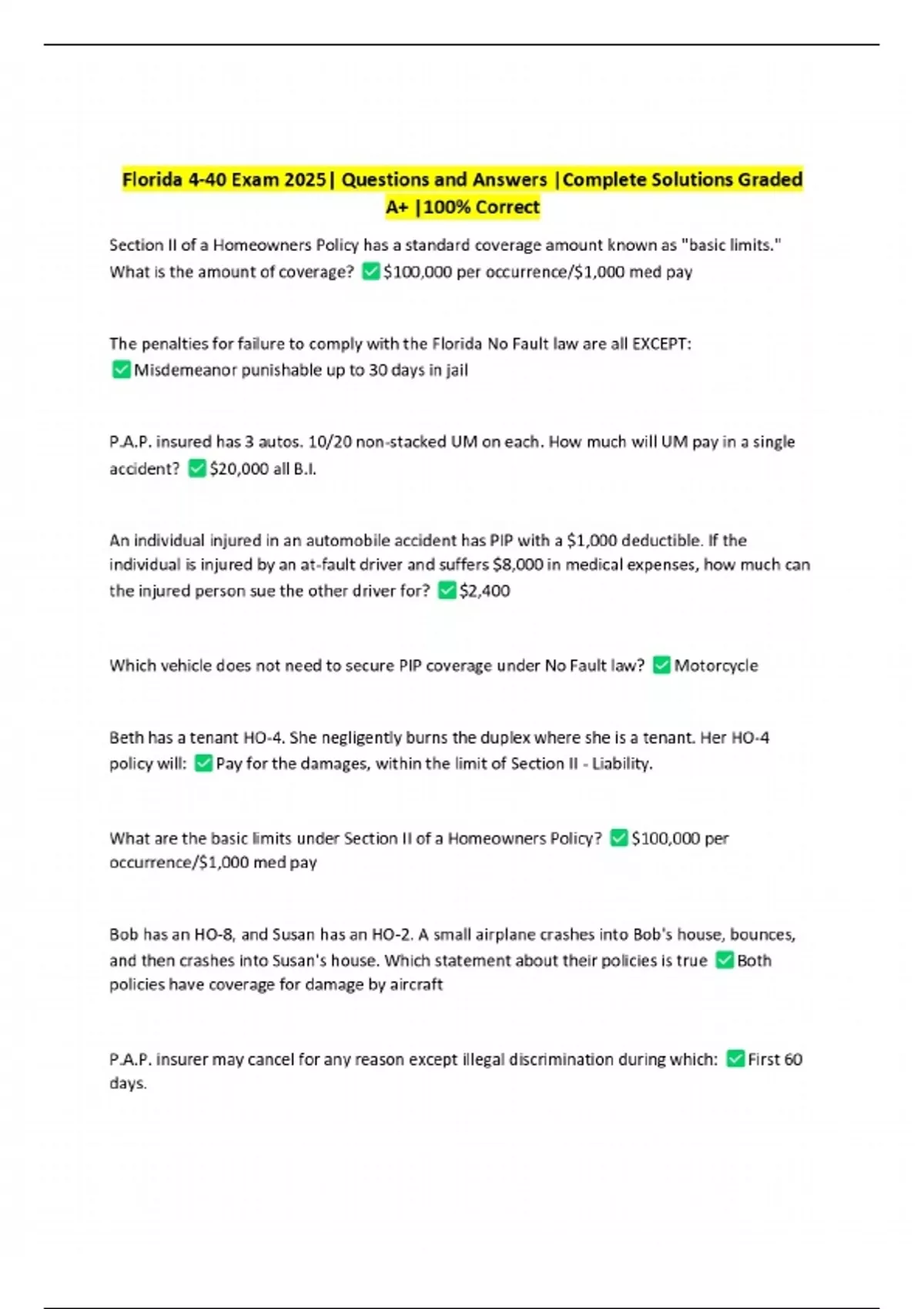 PACKAGE-::Florida 4-40 Exams with Correct Answers