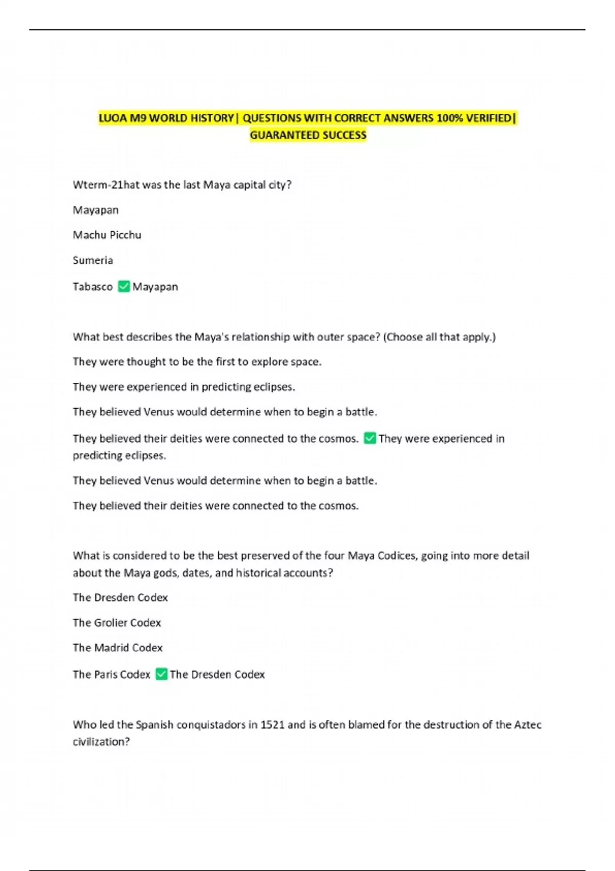 LUOA M9 WORLD HISTORY| QUESTIONS WITH CORRECT ANSWERS 100% VERIFIED| GUARANTEED SUCCESS