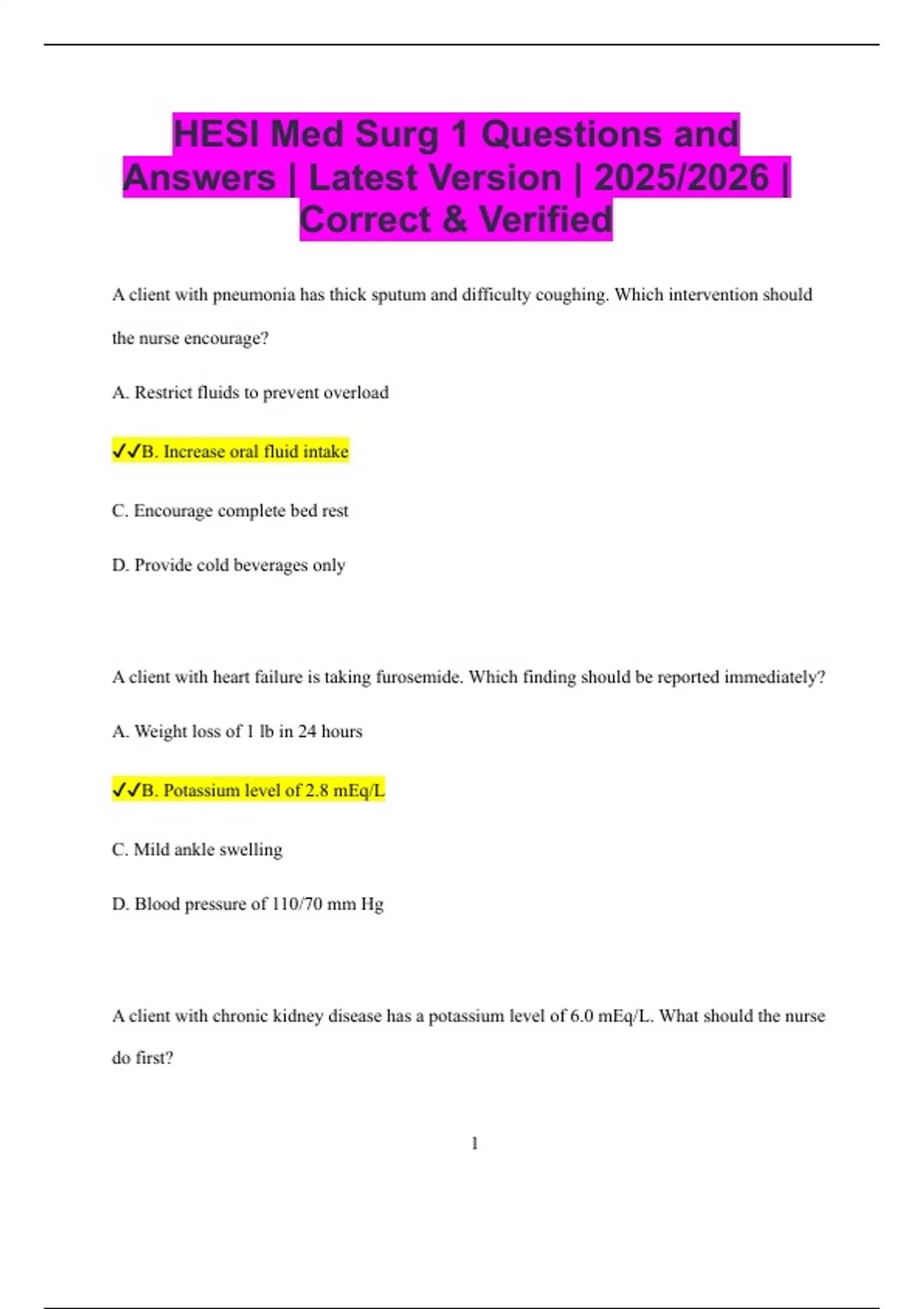 HESI - Medical Surgical Nursing Bundled Exams Questions and Answers Multiple Versions Latest Updates (2025/2026) (Complete, Accurate, and Verified)