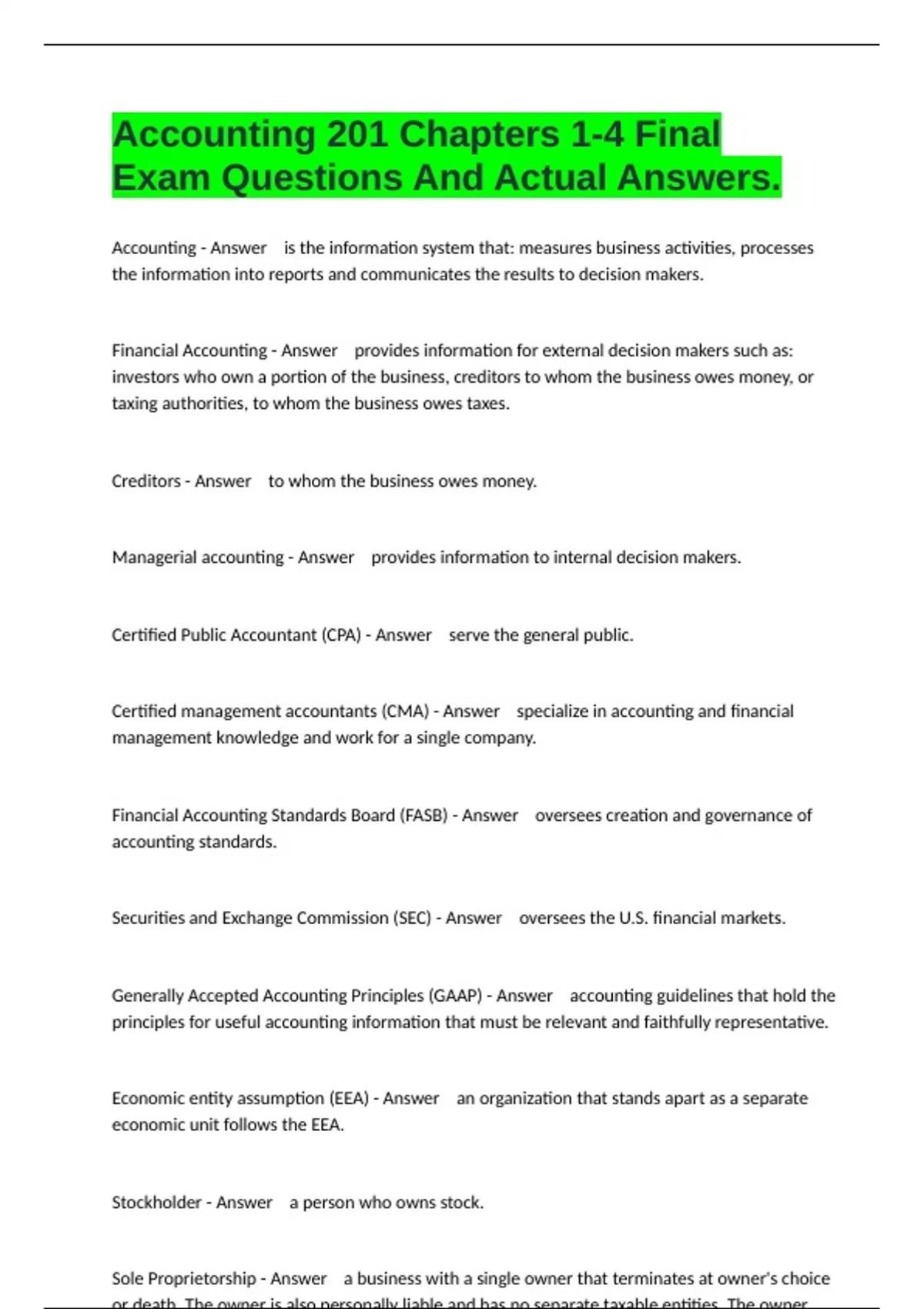 ACCT 201 Exam Package Deal Bundle Graded To Pass.