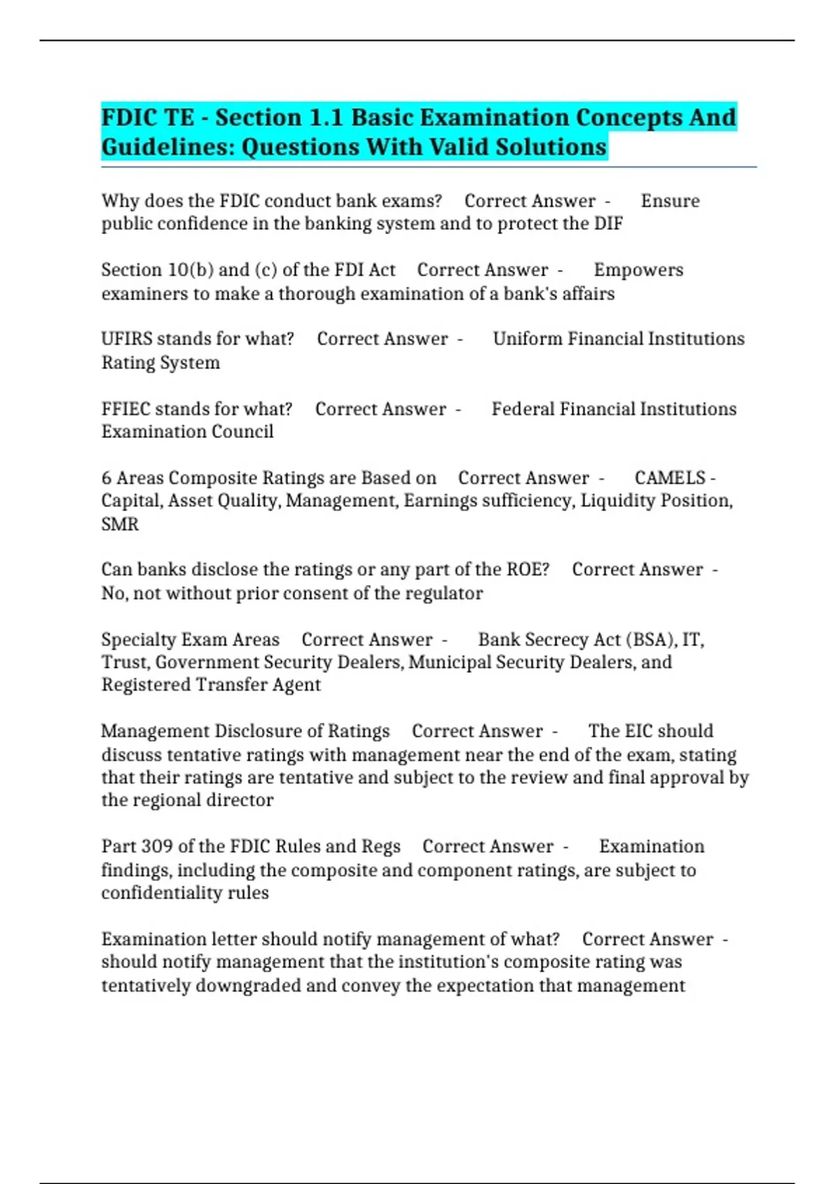 PACKAGE::- FDIC TE EXAMS - FEDERAL DEPOSIT INSURANCE CORPORATION (FDIC) TECHNICAL EVALUATION (TE)