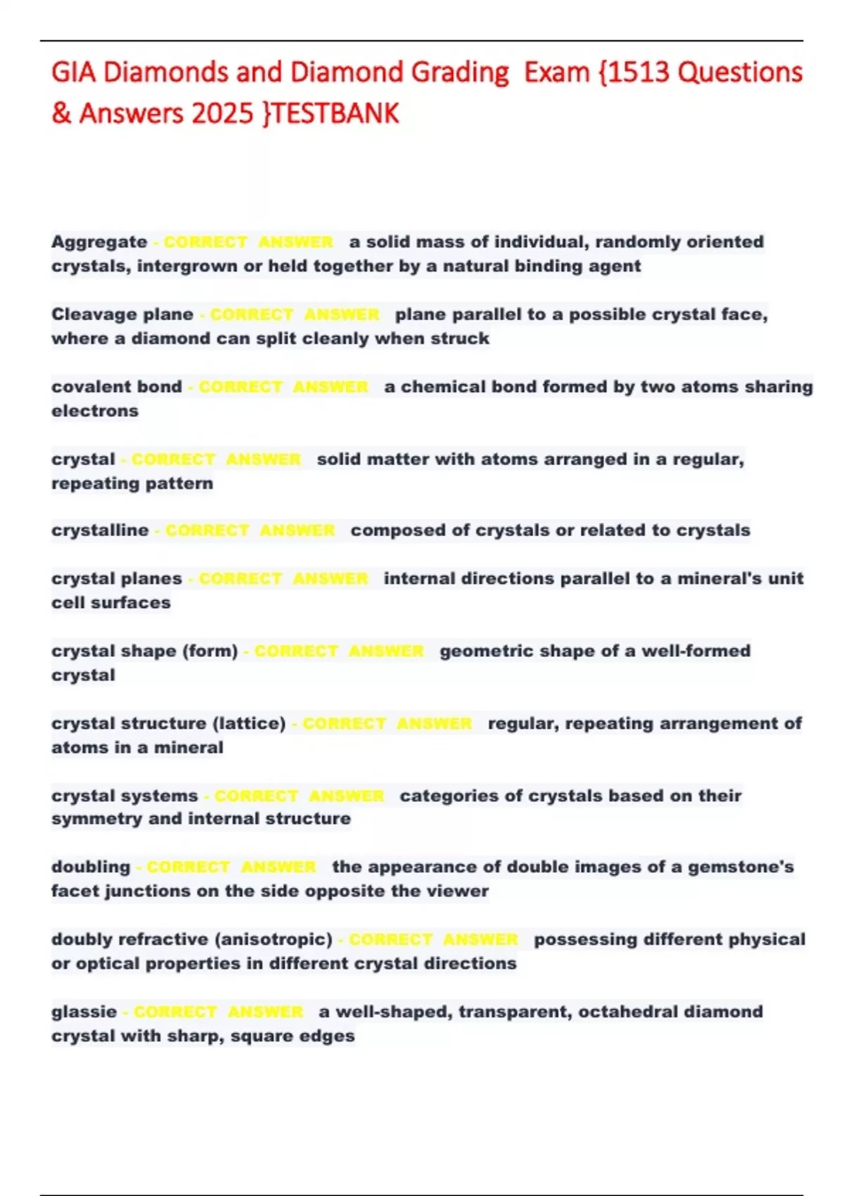 GIA Diamonds and Diamond grading LATEST VERSION QUESTIONS AND ANSWERS WITH STUDY GUIDE DETAILED AND VERIFIED FOR GUARANTEED PASS BUNDLE