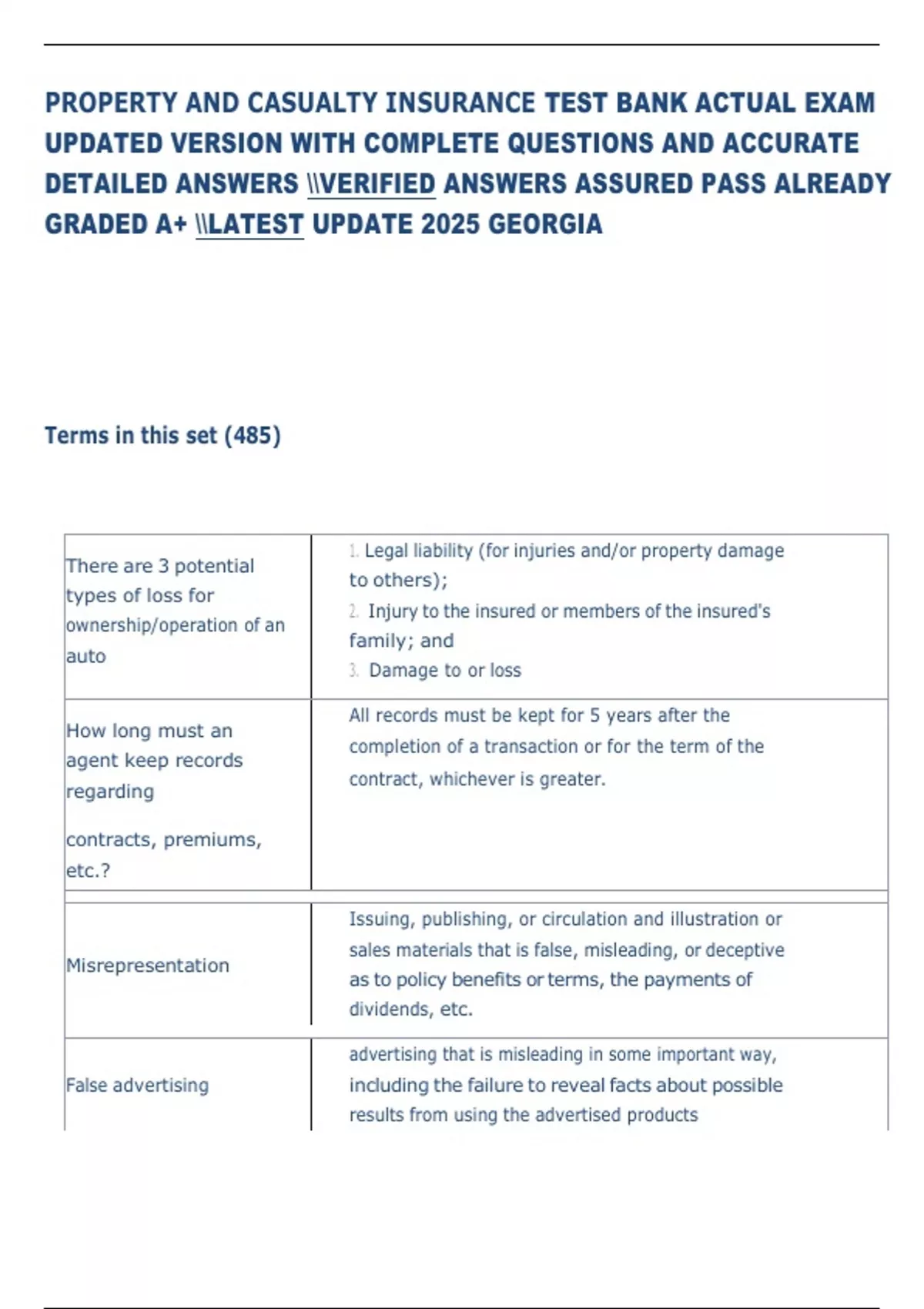 Property & Casualty Insurance Test Bank GA State EXAM PREP COMPREHENSIVE QUESTIONS WITH MULTIPLE CHOICES |VERIFIED & REVISED ANSWERS BRAND NEW Property & Casualty Insurance Test Bank GA State EXAM PREP COMPREHENSIVE QUESTIONS WITH MULTIPLE CHOICES |VERIFIED & REVISED ANSWERS BRAND NEW Property & Casualty Insurance Test Bank 2025