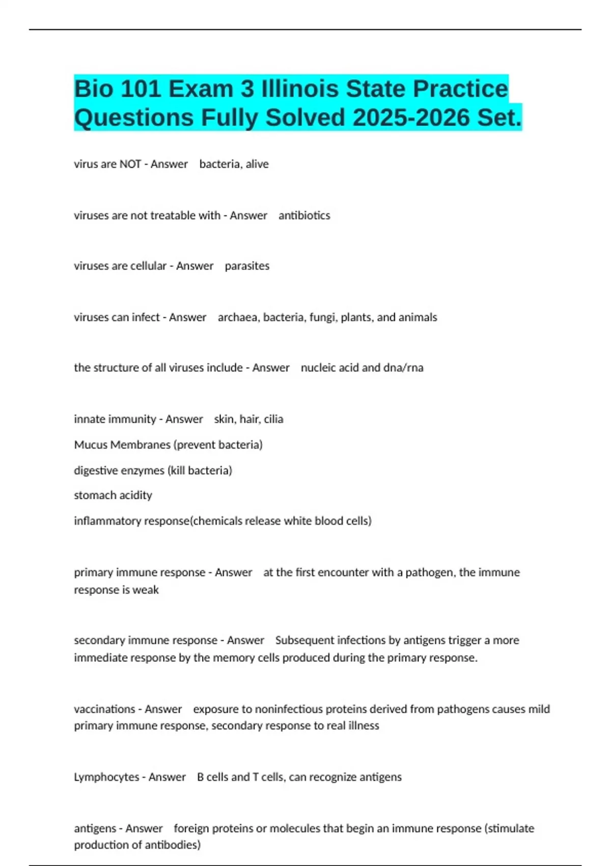 BIO 101 Exam (Illinois State University) Questions with 100% Correct Answers Package Deal Bundle .