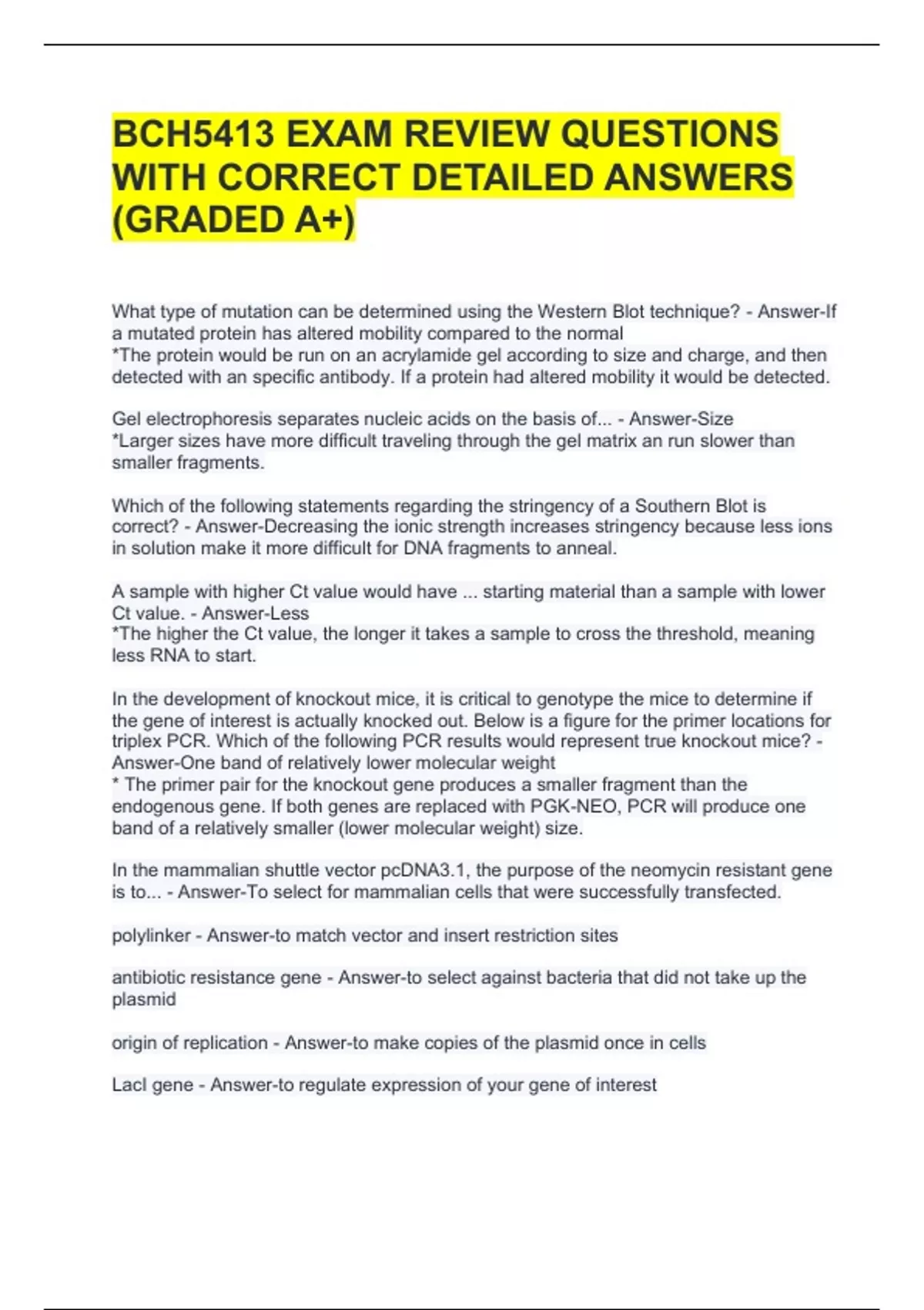 1 Exam (elaborations) BCH 5413- EXAM 1 QUESTIONS WITH COMPLETE SOLUTIONS (LATEST 2024|2025 UPDATES) 2 Exam (elaborations) BCH5413 EXAM REVIEW QUESTIONS WITH CORRECT DETAILED ANSWERS (GRADED A+) 3 Exam (elaborations) BCH5413 EXAM 3 | NEW 2025 UPDATE | QUESTIONS AND ANSWERS 100% ACCURATE 4 Exam (elaborations) BCH5413 - EXAM 1 QUESTIONS WITH CORREC