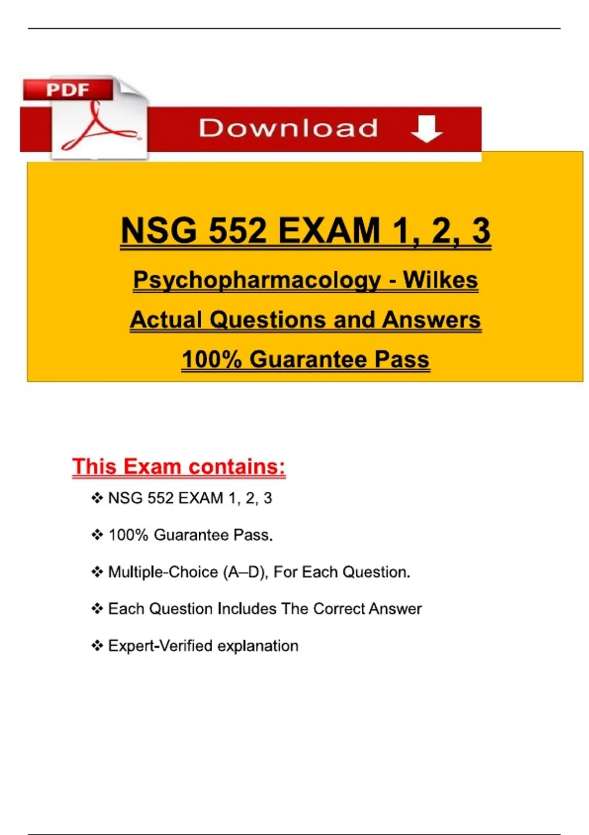(Exams 1, 2, & 3) NSG 552 (Exam, Study Guide & Review) Psychopharmacology – Wilkes University