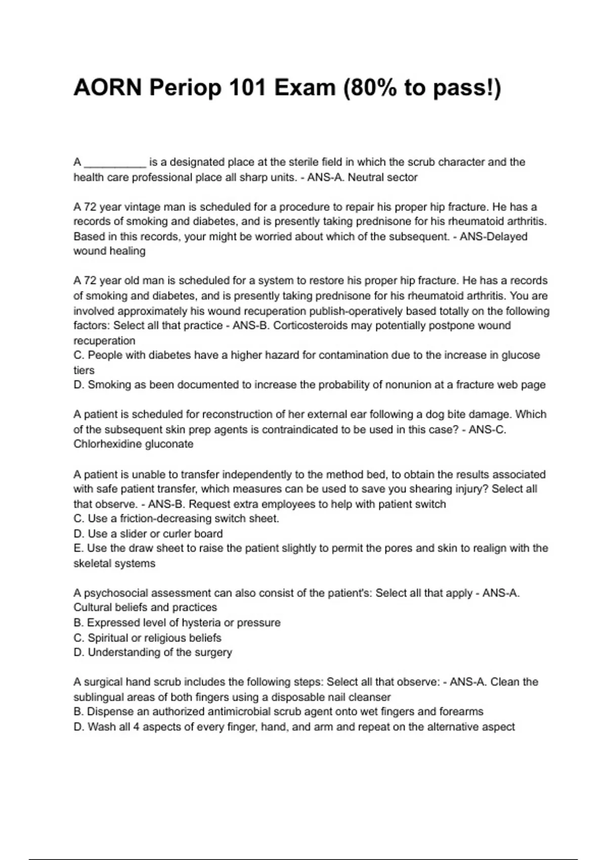 AORN Periop 101 Exam (80% to pass!) NEWEST 2025/2026 ACTUAL EXAM COMPLETE QUESTIONS AND CORRECT DETAILED ANSWERS (VERIFIED ANSWERS) |ALREADY GRADED A+||BRAND NEW!!
