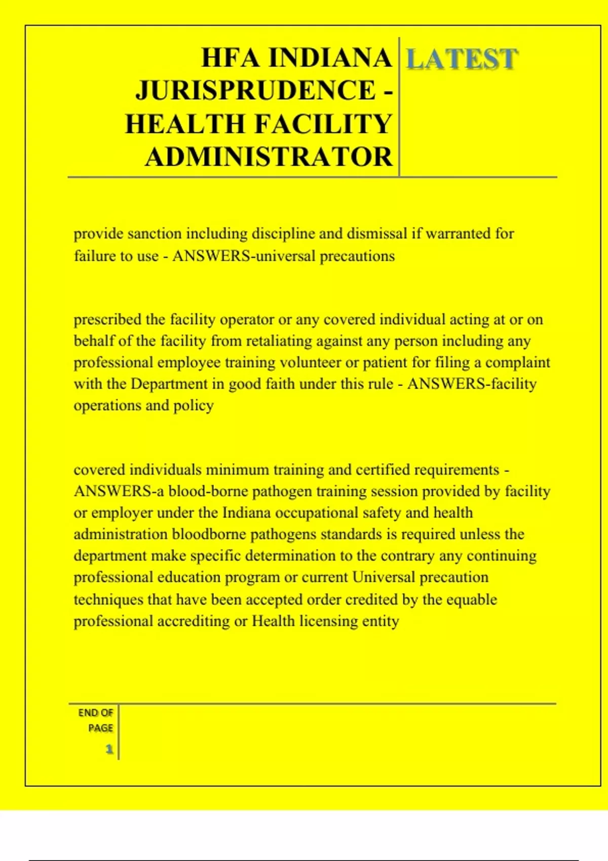 INDIANA STATE JURISPRUDENCE FOR HEALTH FACILITY ADMINISTRATORS