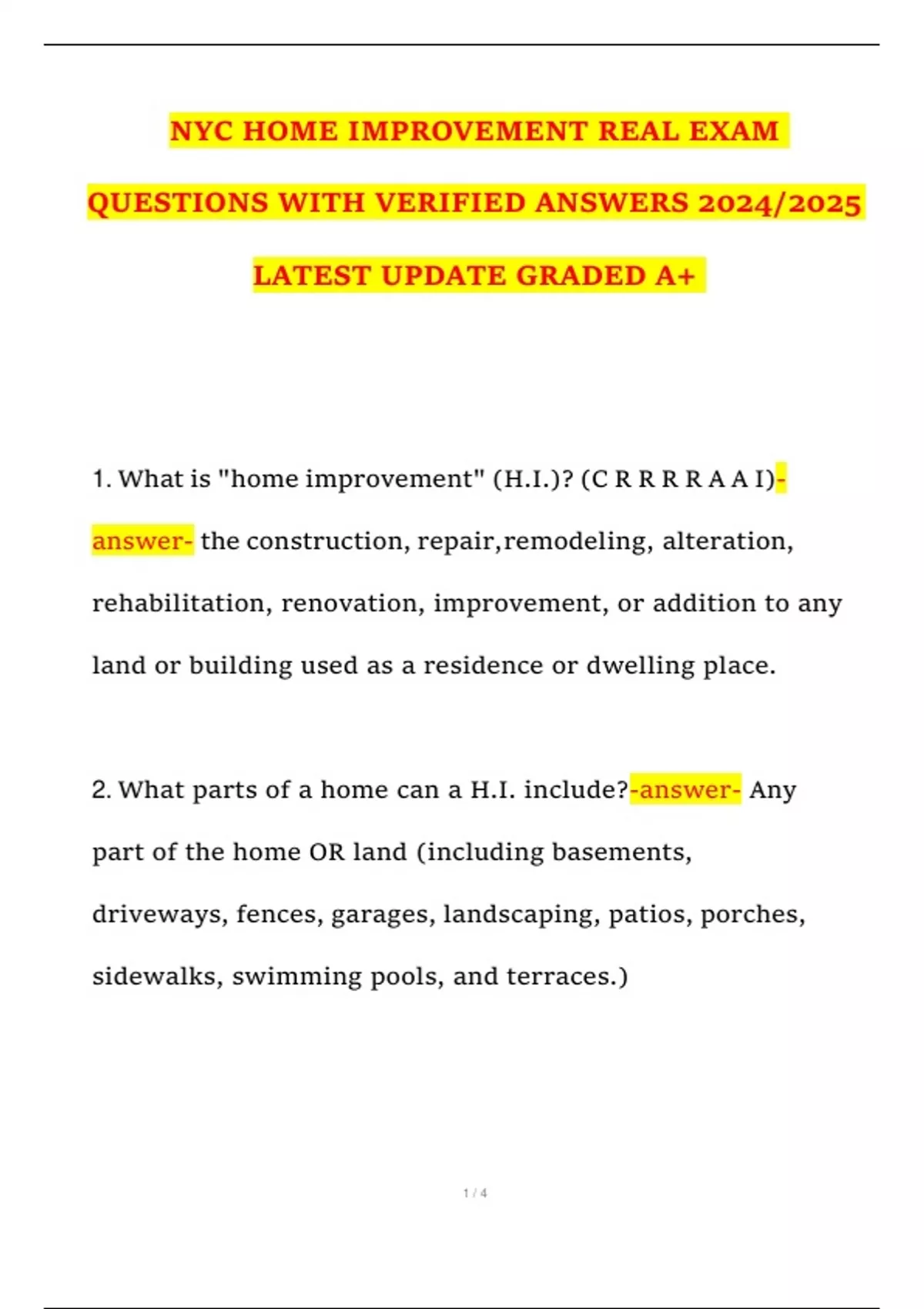 QUALITY DOCUMENTS FOR BEST RESULTS. In my page you will find latest Exams ,Assignments, Test Banks, Exam Elaboration, test with Questions and Answers, Discussions, Case Studies, package deals, etc. I upload quality. Instant delivery.