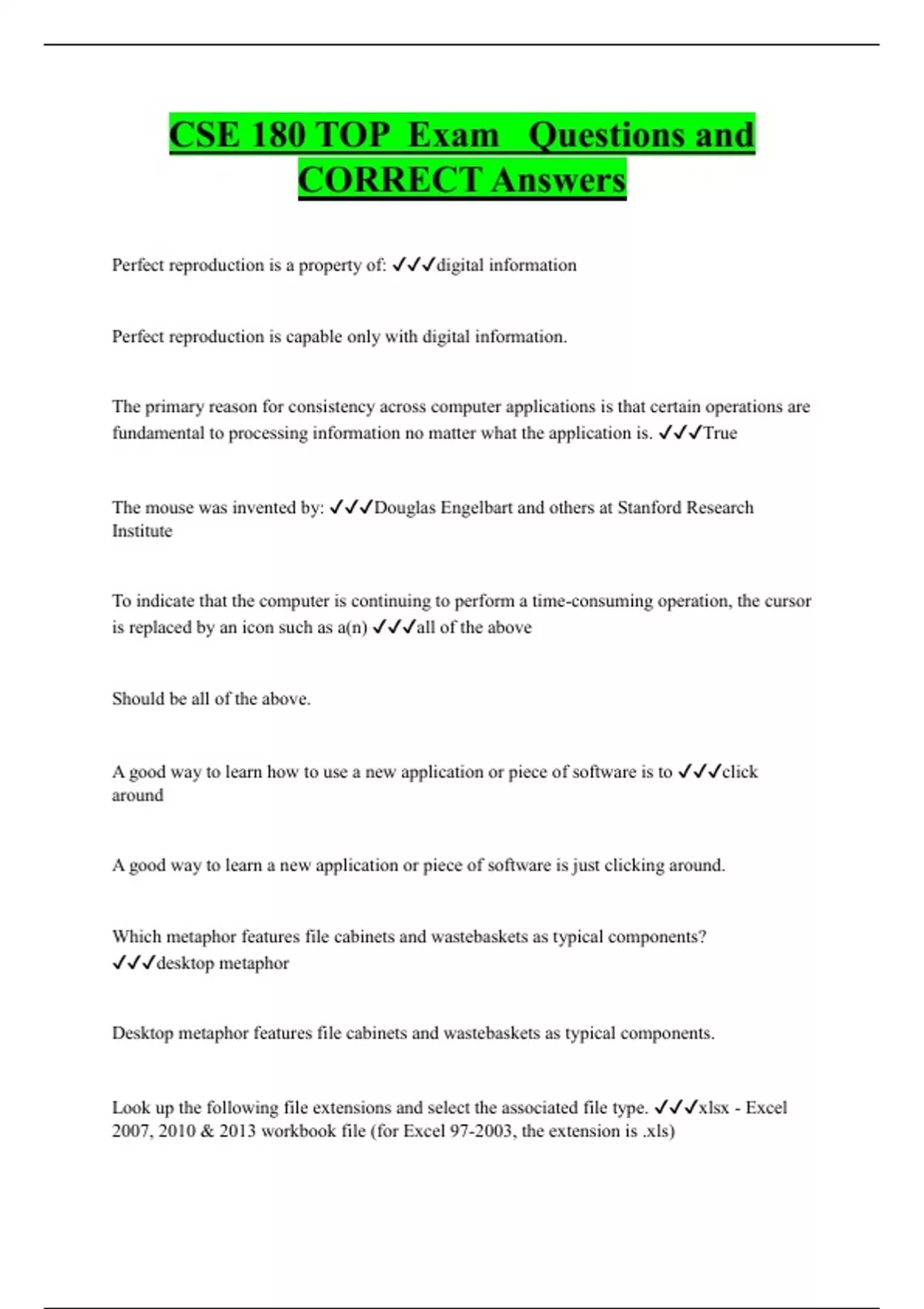 CSE 180 Bundled Exam Questions WITH CORRECT Answers