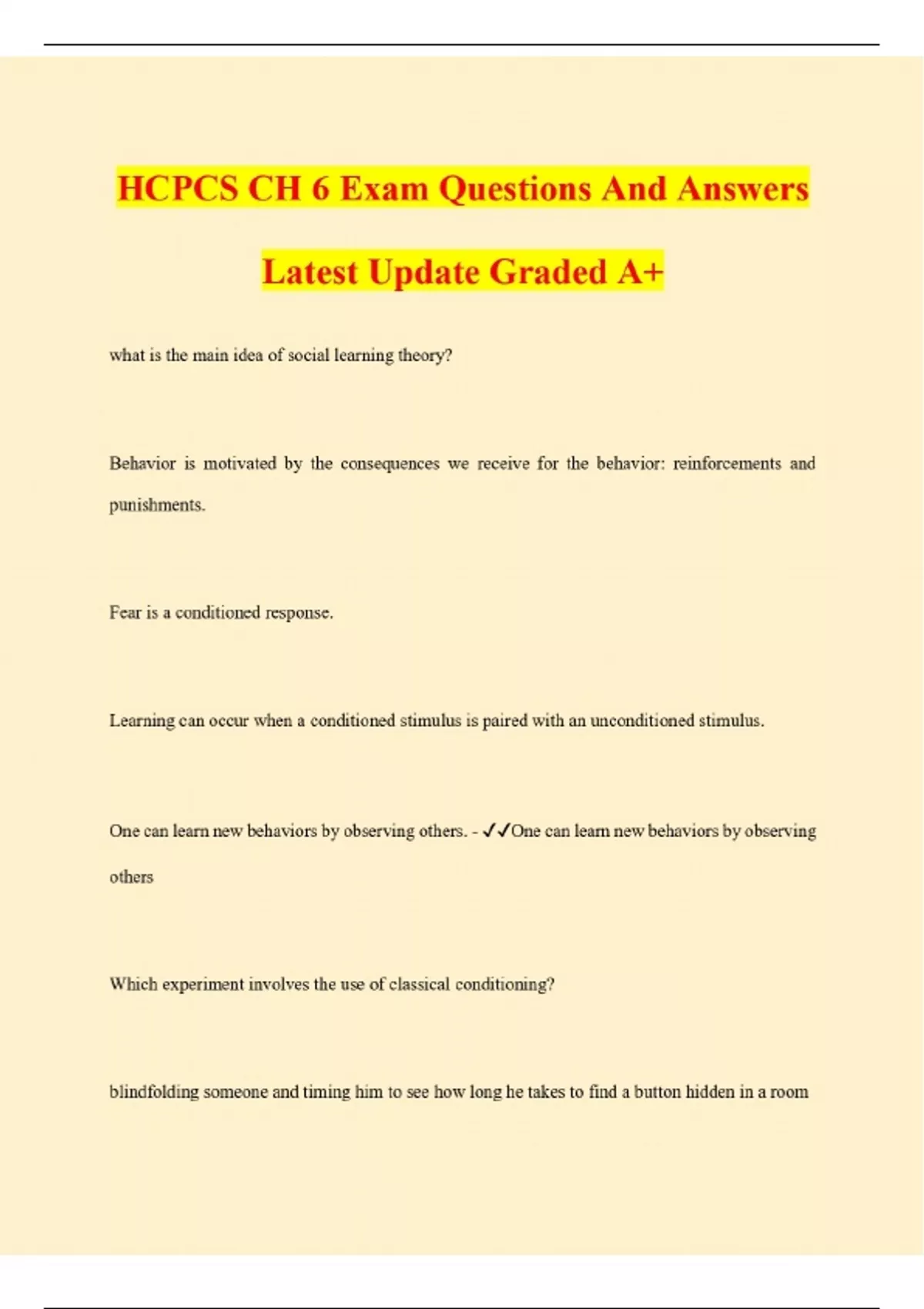 HCPCS CH 6 Exam Questions And Answers Latest Update Graded A+