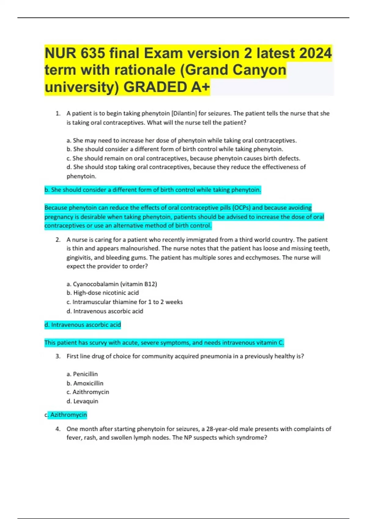 NUR 635 final Exam version 2 latest 2024 term with rationale (Grand Canyon university) GRADED A+