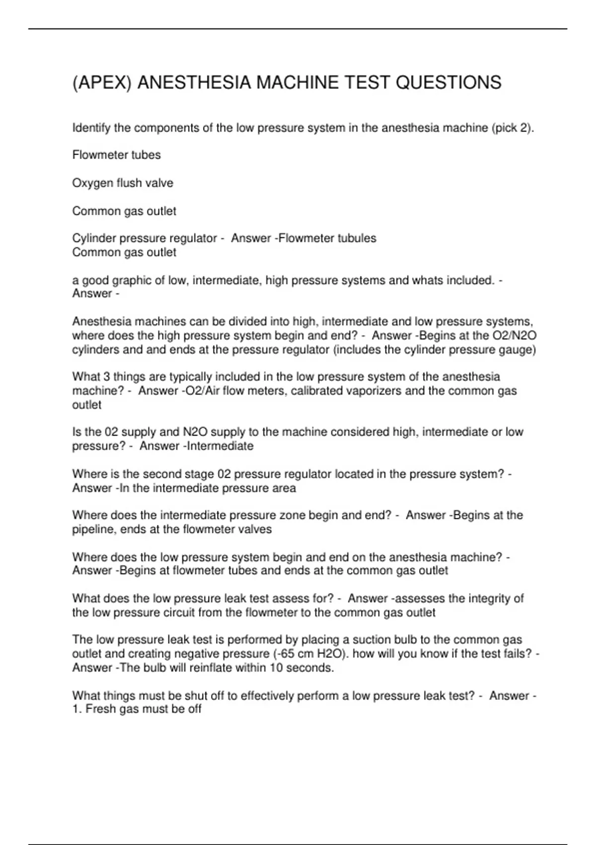 DR. KOST ANESTHESIA MACHINE LECTURE QUESTIONS & ANSWERS 2 Exam (elaborations) DR. KOST ANESTHESIA MACHINE QUESTIONS & ANSWERS 3 Exam (elaborations) (APEX) ANESTHESIA MACHINE TEST QUESTIONS 4 Exam (elaborations) ANESTHESIA MACHINE - KOST LECTURE QUESTIONS & ANSWERS 5 Exam (elaborations) ANESTHESIA MACHINE CHECK QUESTIONS & ANSWERS 6 Exam (elabo