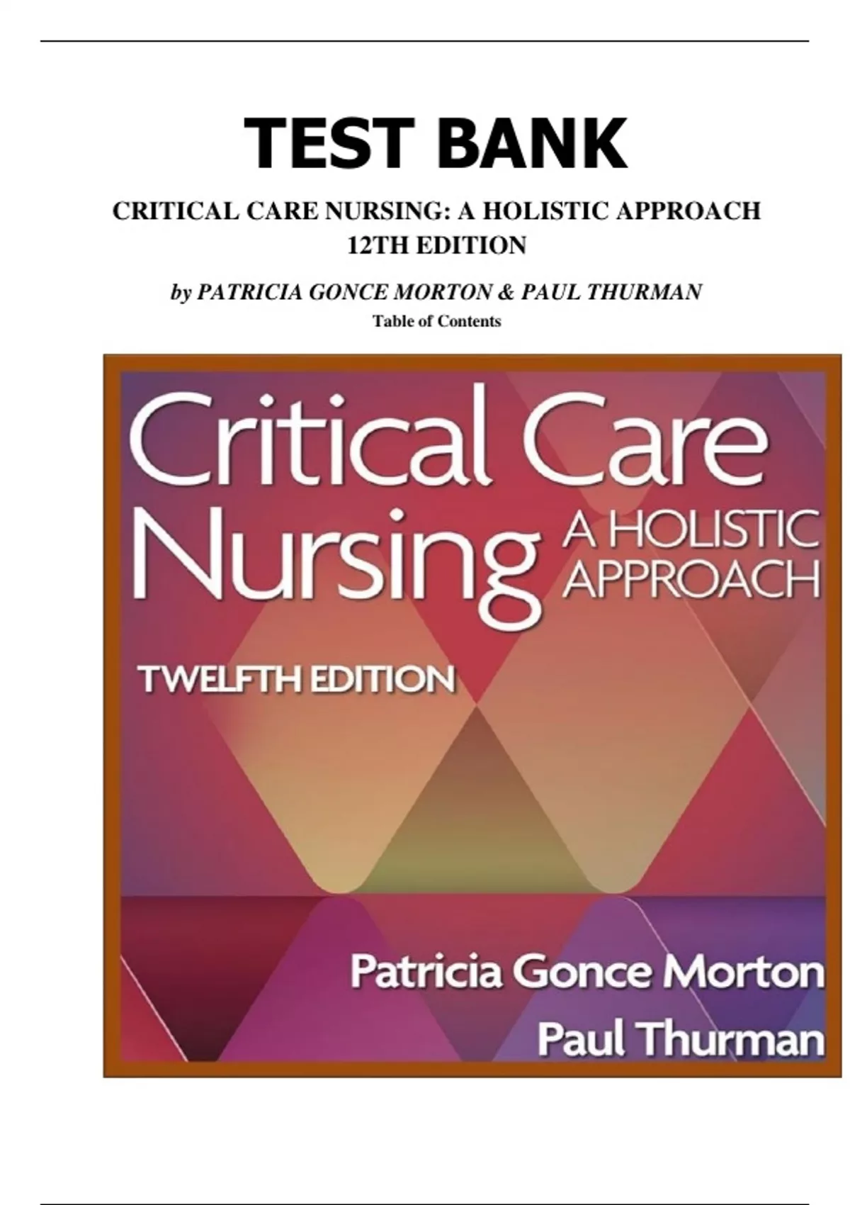 Test Bank for Critical Care Nursing: A Holistic Approach 12th Edition by Morton & Thurman, All Chapters 1 to 56 Covered,|| Complete Latest Guide -2025