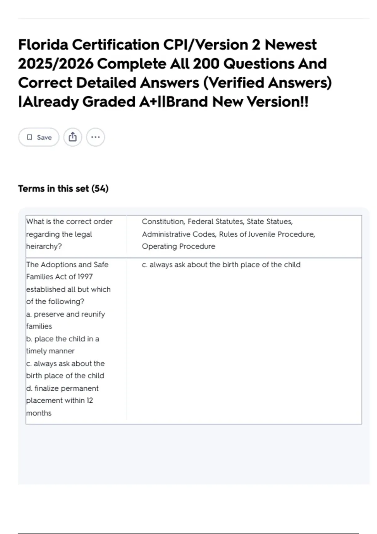 Florida Certification CPI/Version 2 Newest 2025/2026 Complete All 200 Questions And Correct Detailed Answers (Verified Answers) |Already Graded A+||Brand New Version!!