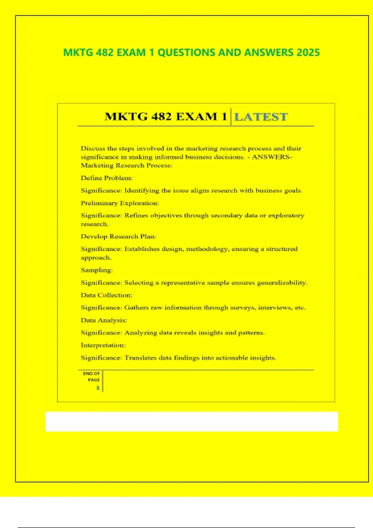 MKTG 482 EXAM 1 QUESTIONS AND ANSWERS 2025