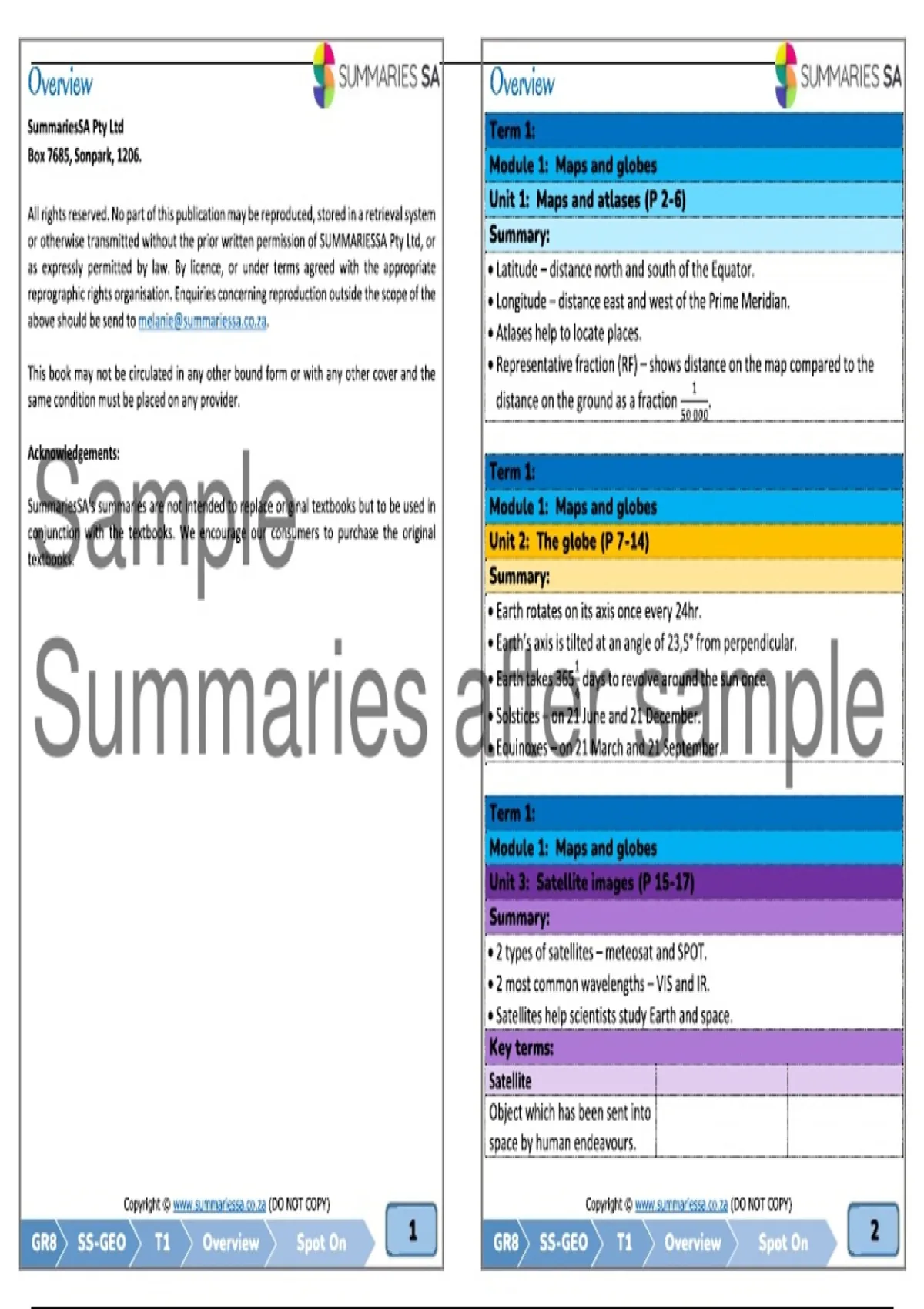 Summary Grade 8 Social Sciences (SS) (Geography) Term 1 (Spot On) Summaries