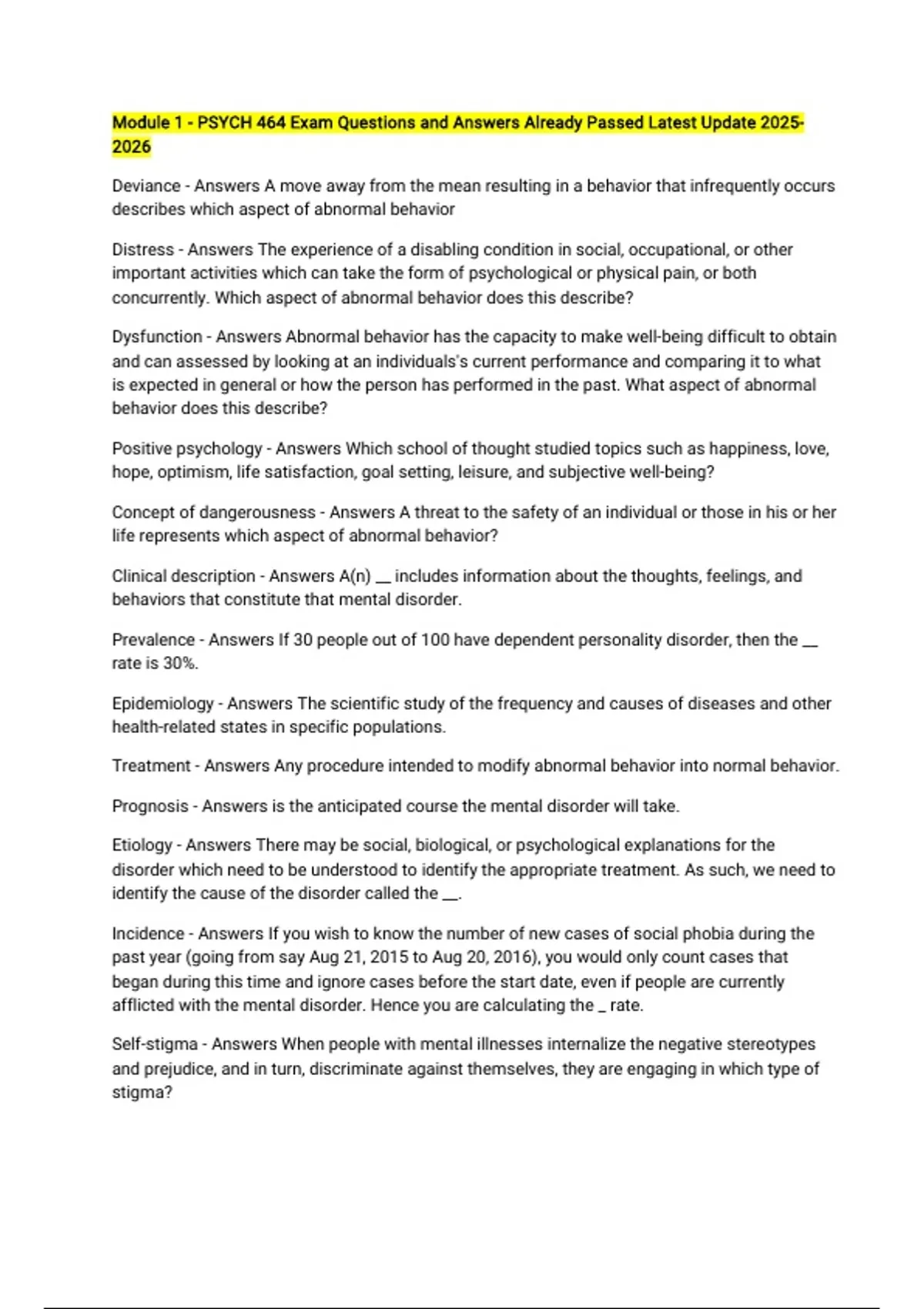 PSYCH 464 Bundled Questions Answered Correctly Latest Update 2025/2026