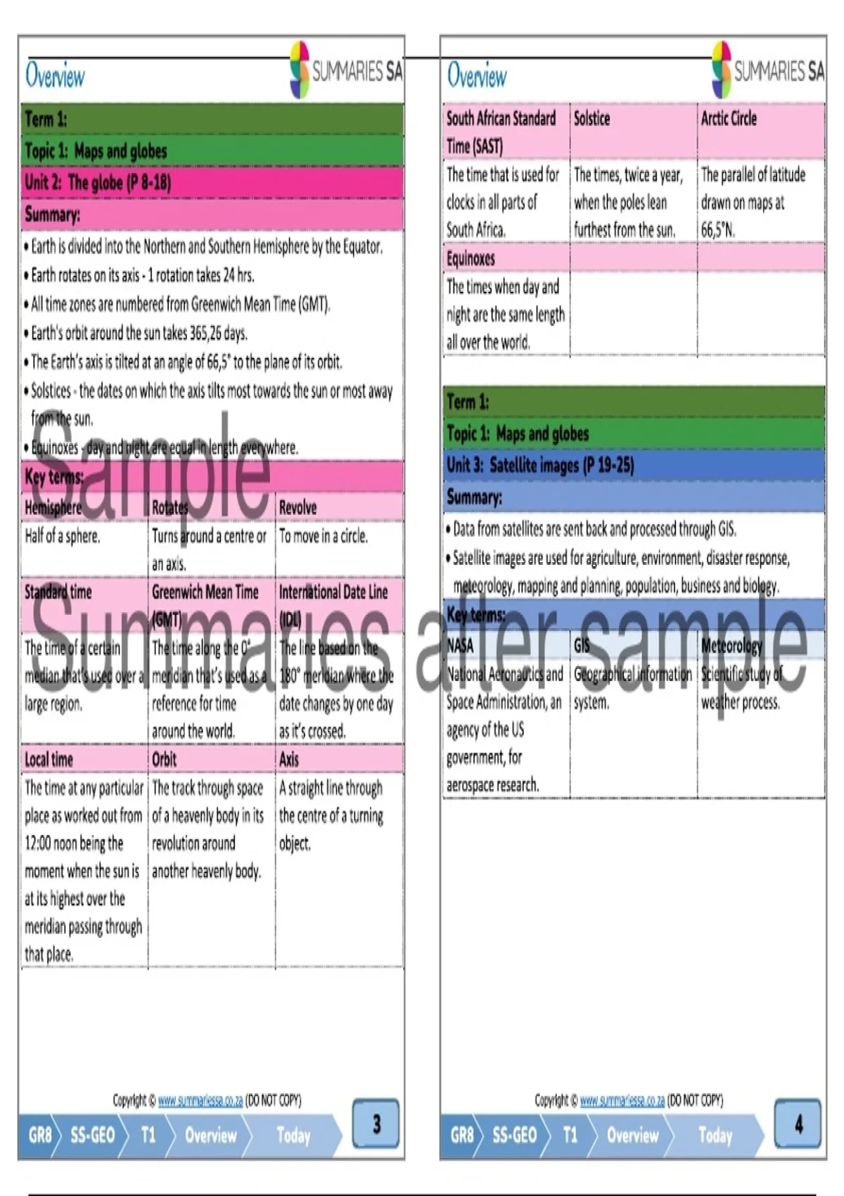 Summary Grade 8 Social Sciences (SS) (Geography) Term 1 (Today) Summaries