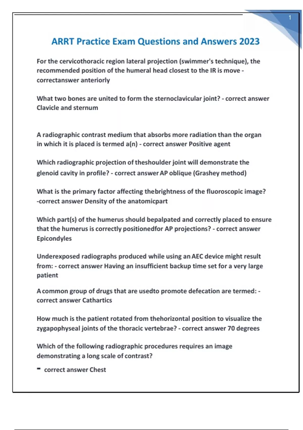 ARRT Radiography Exam Review Questions and Answers 2023.