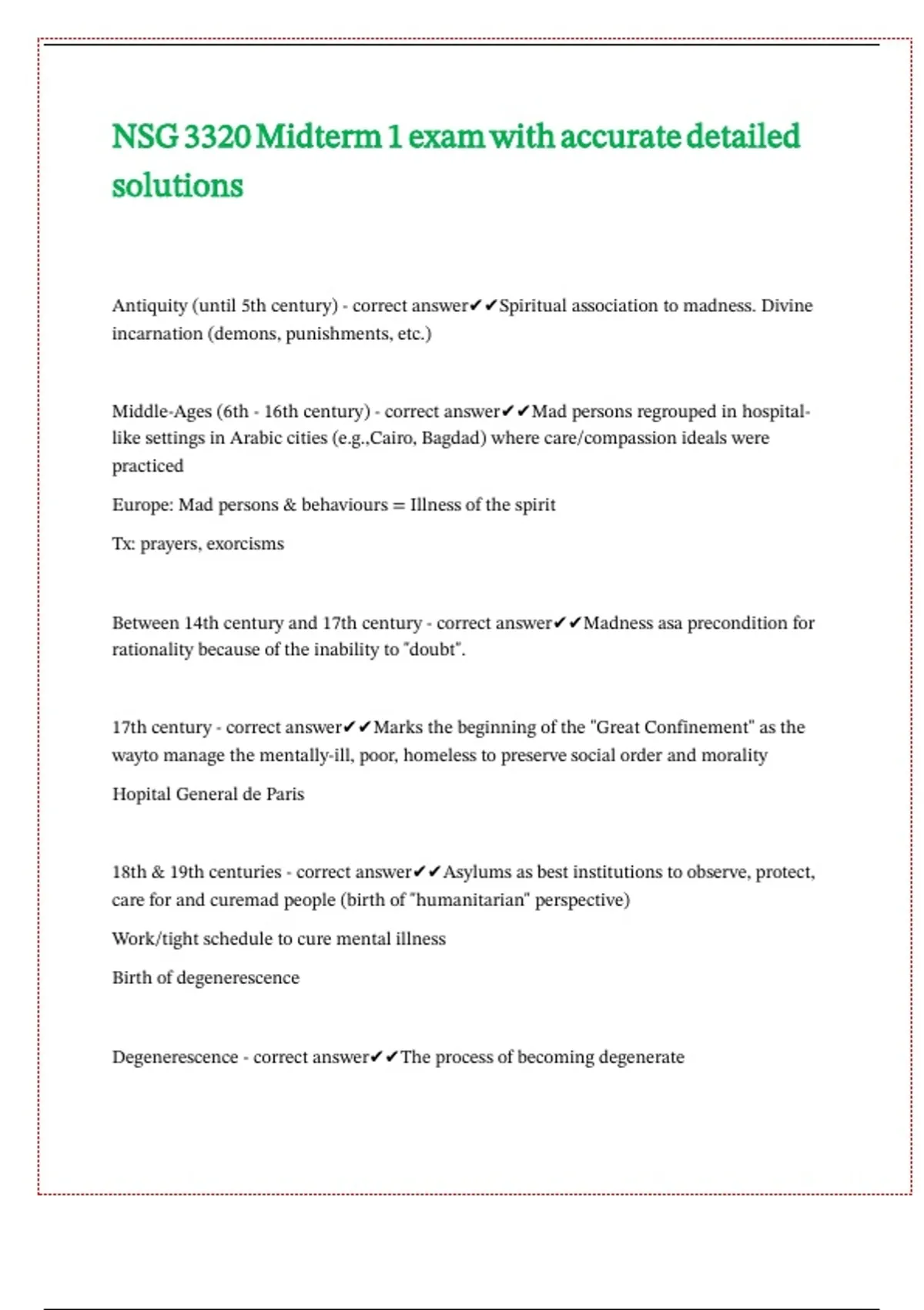 NSG 3320 Midterm 1 exam with accurate detailed solutions