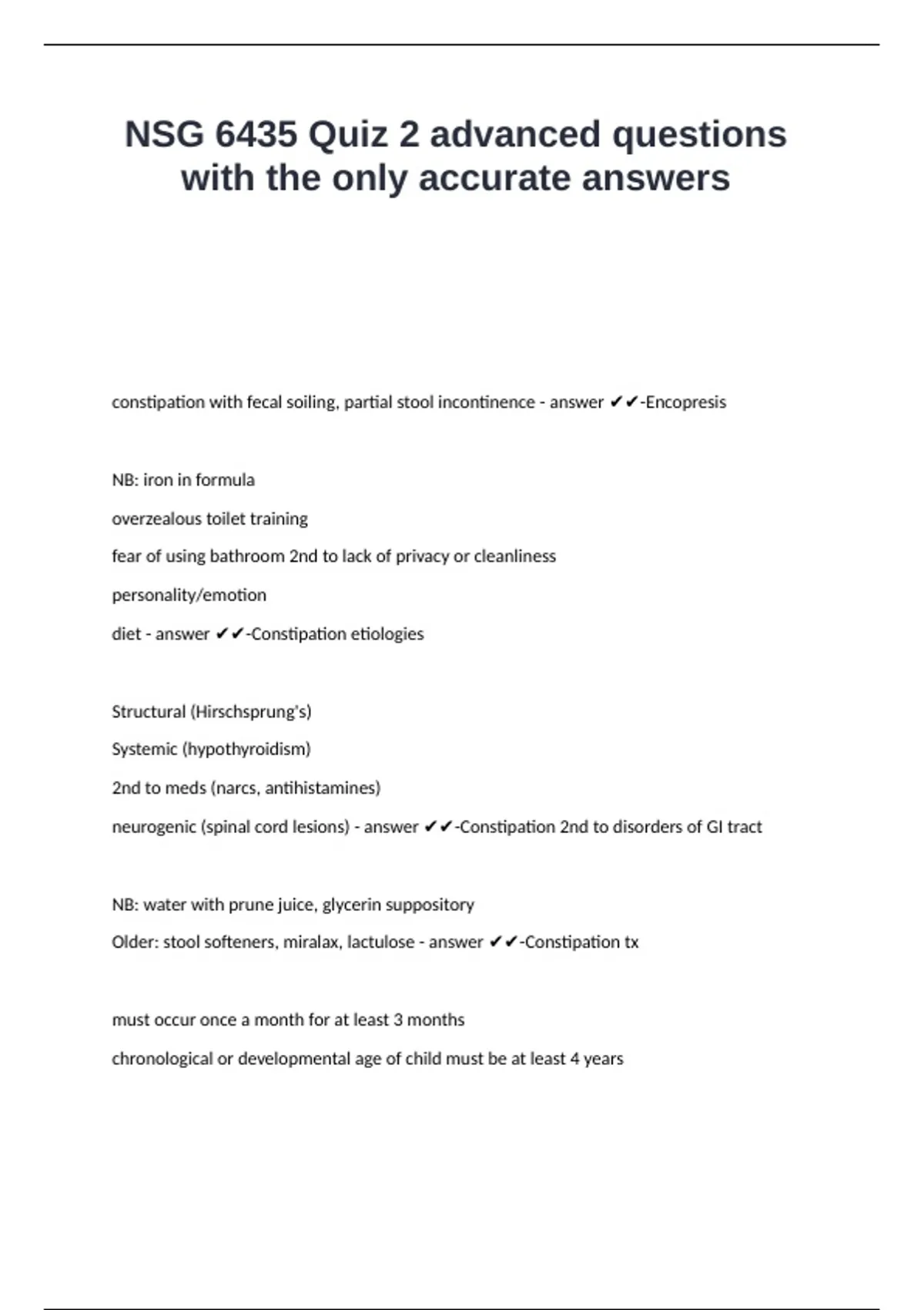NSG 6435 Quiz 2 advanced questions with the only accurate answers