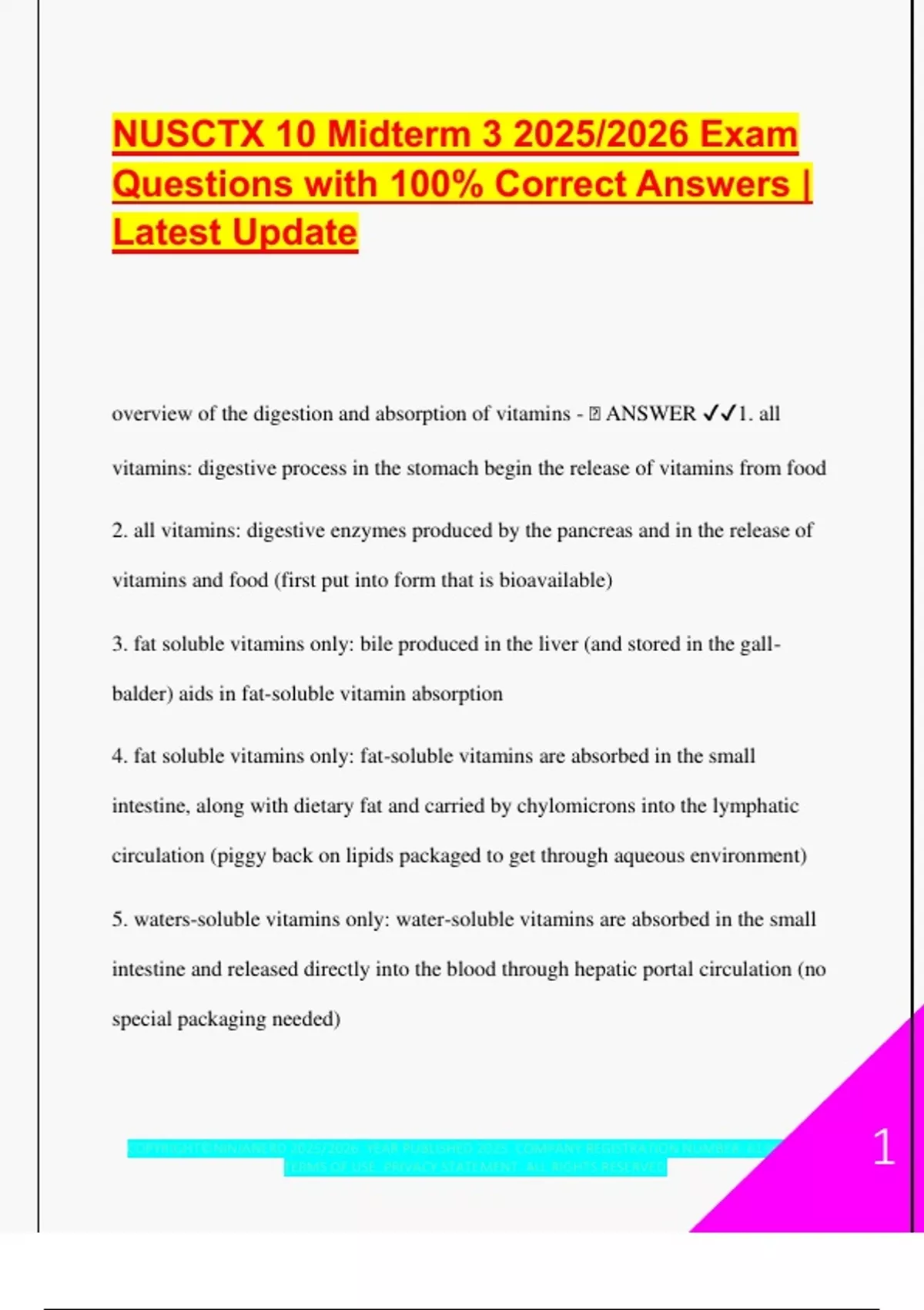 NUSCTX 10 Midterm 3 2025/2026 Exam Questions with 100% Correct Answers | Latest Update