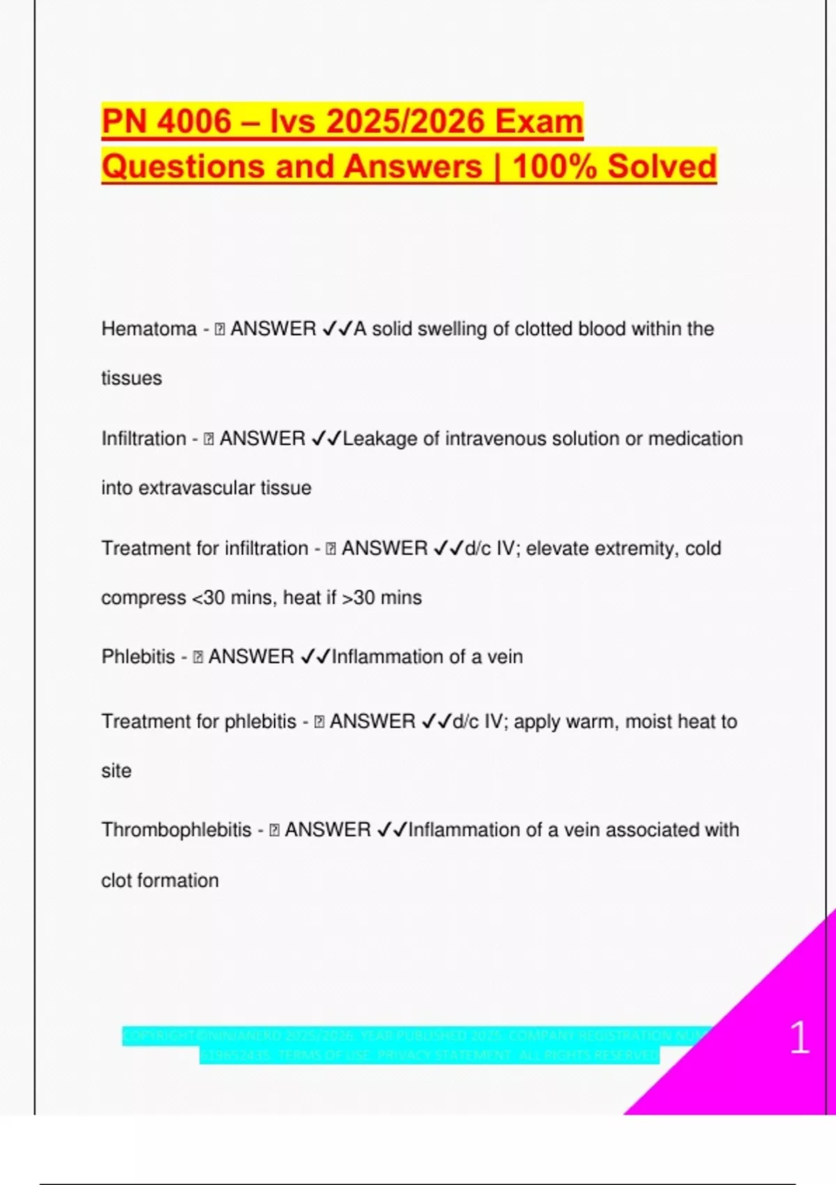 PN 4006 IV Therapy Exam Guide 2025/2026 – Fluid Types, Complications & Clinical Protocols | 100% Verified A+ Answers