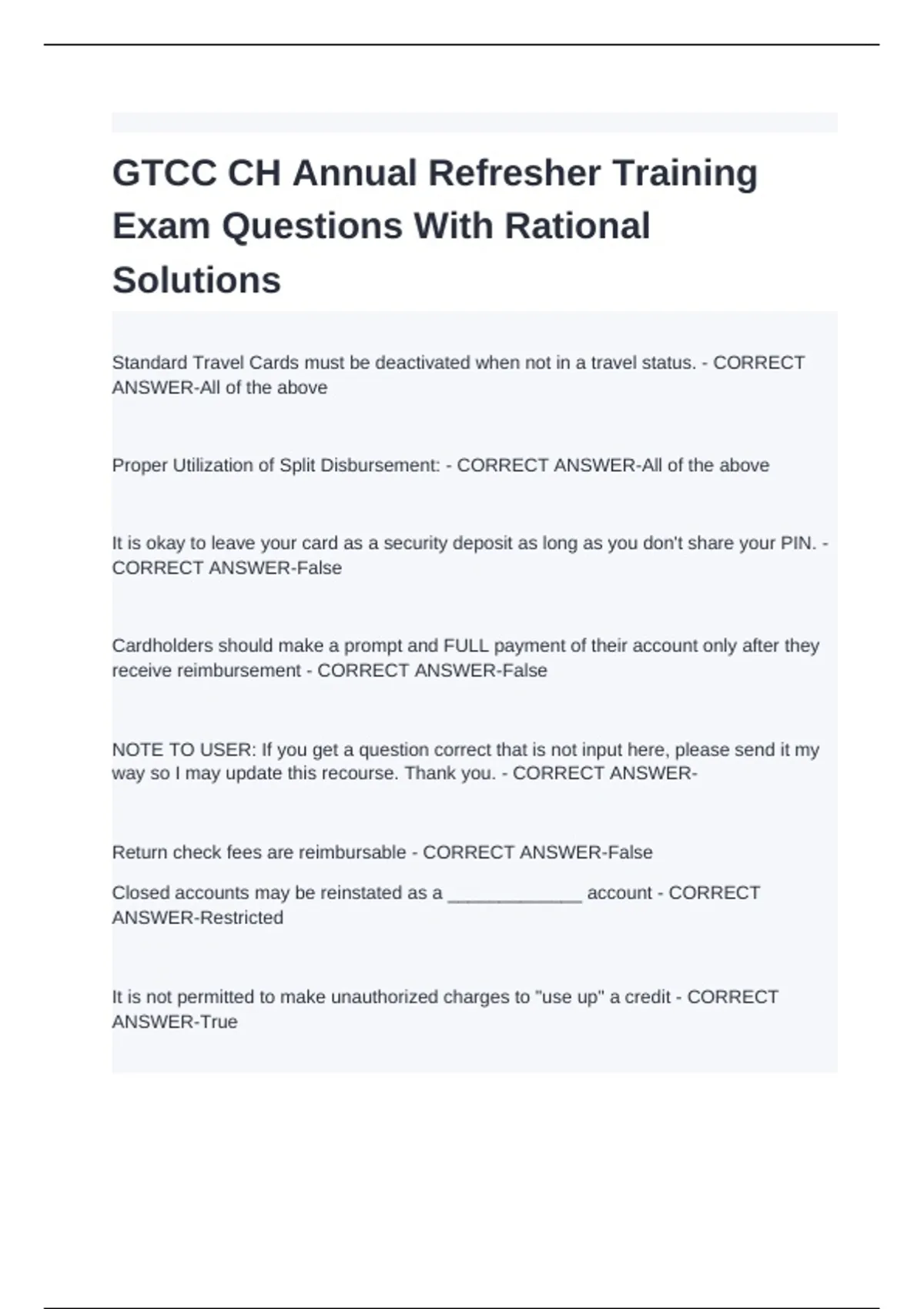 GTCC CH Annual Refresher Training Exam Questions With Rational Solutions