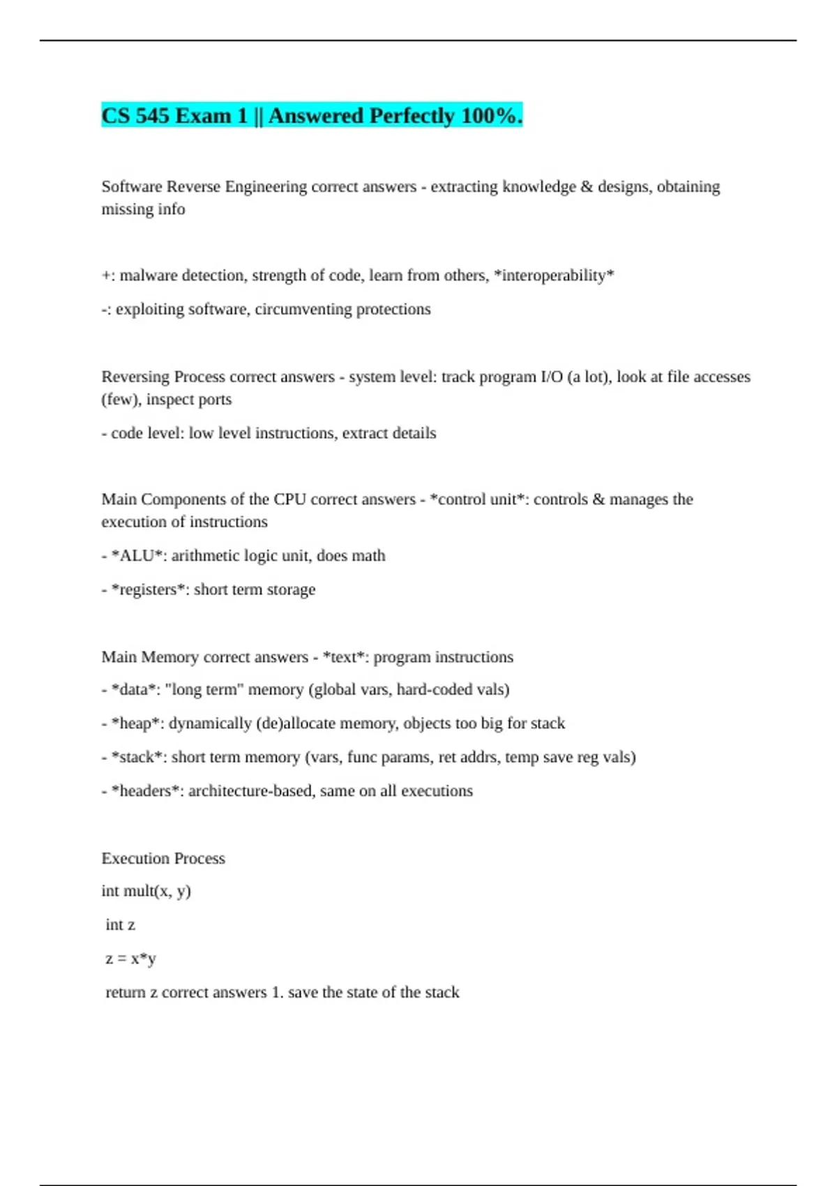 CS 545 Exam 1 || Answered Perfectly 100%. CS545 Midterm1 || Possible Questions Accurately Answered. CS 545 - Final Review || All Answers are Valid. CS 545 Midterm review || Graded A+.