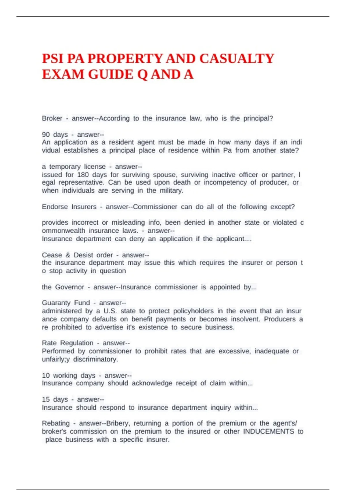 PSI CA PROPERTY AND CASUALTY PRACTICE EXAMINATION Q AND A