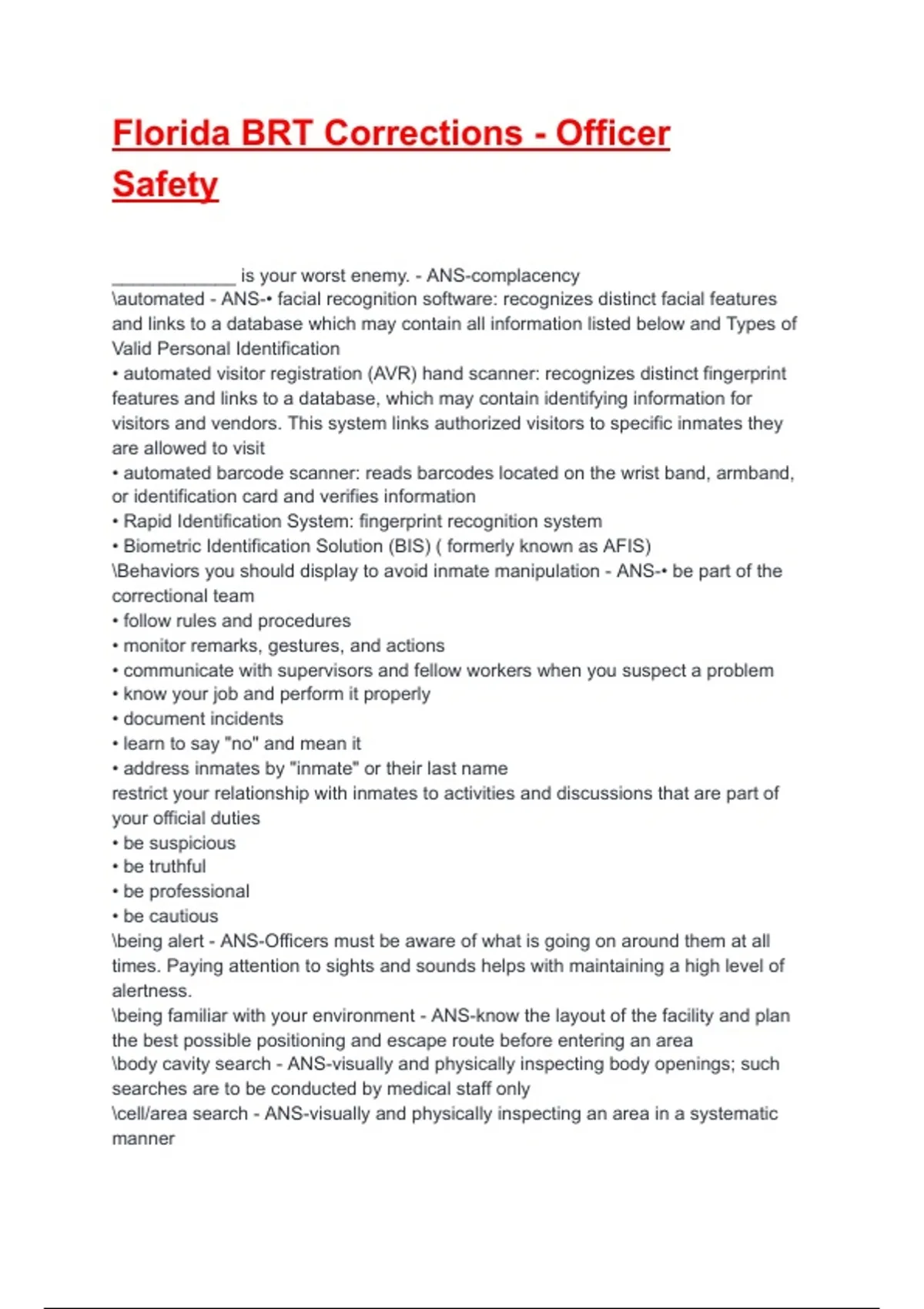 Florida BRT Corrections - Officer Safety Exam 2025/2026 Questions With Complete Solutions.