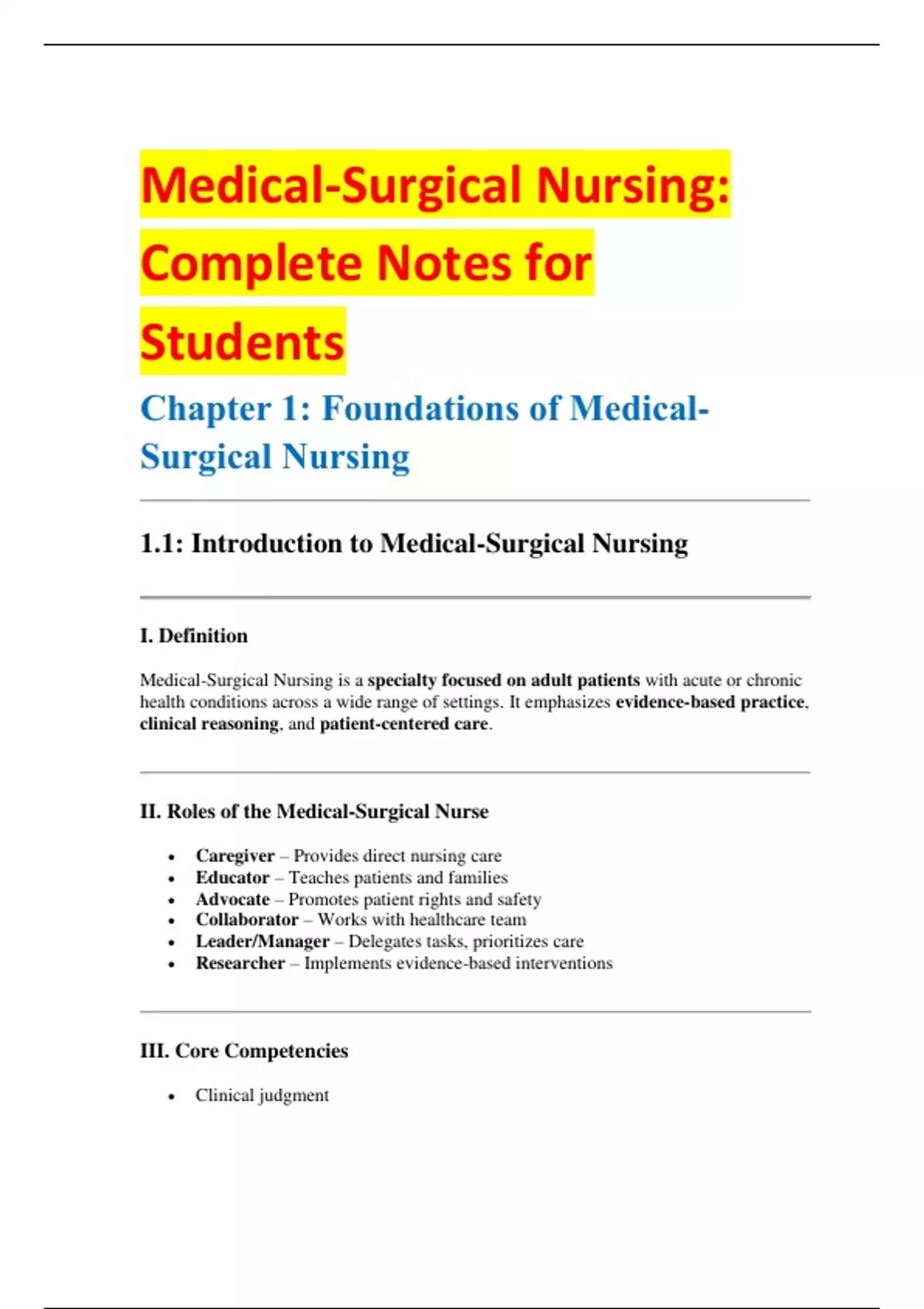 Summary Medical-Surgical Nursing Complete Study Notes: Foundations, Cardiovascular, Respiratory & GI Disorders (Chapters 1–5)
