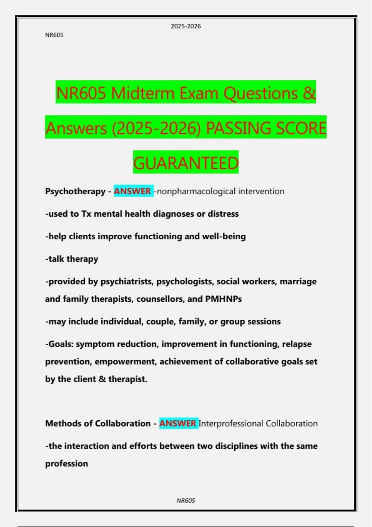 NR605 Midterm Exam Questions & Answers () PASSING SCORE GUARANTEED
