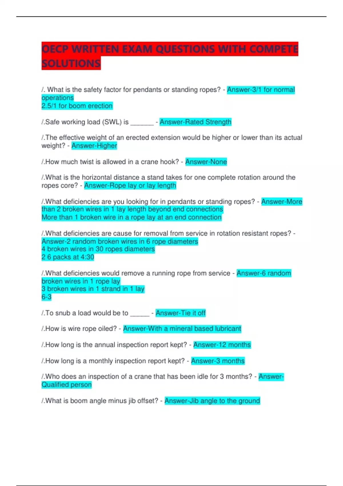Bundle For OEC FINAL EXAM STUDY GUIDE QUESTIONS WITH NEW UPFDATE SOLUTIONS